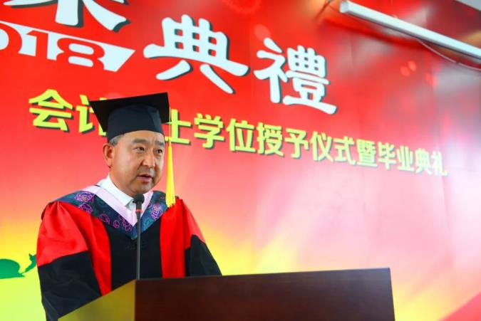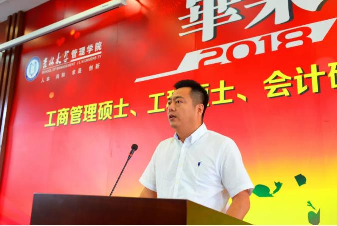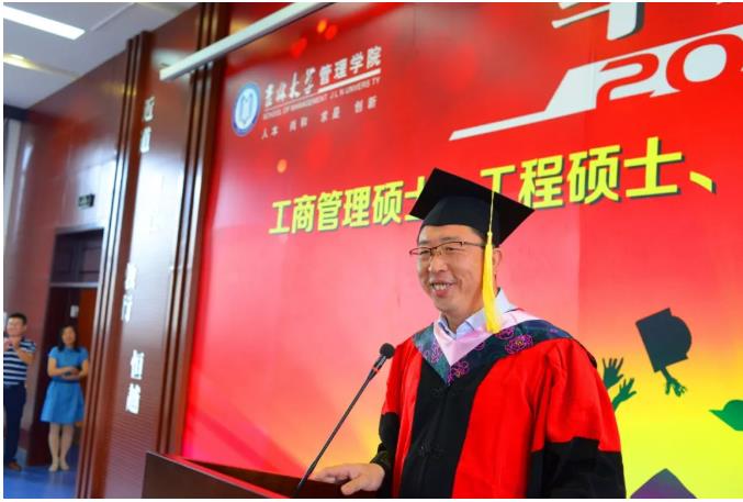 典礼进行第四项:实破生花,放飞理想。追逐美好理想,谨守法律道德底线是管理学院对同学们的嘱咐与期望,承载着这份嘱托,毕业生们跟随领誓人2018届MBA毕业生胡畔一起进行了诚信宣誓。接下来,好色 管理学院MBA联合会代表,2015级MBA班长,中粮集团高级经理刘凯代表历届MBA学长及好色 管理学院MBA联合会致辞。刘凯说,联合会向大家敞开大门,欢迎同学们加入,衷心希望同学们秉承校训精神,成就一番事业,回馈社会,回馈母校的培养,回馈自己百战归来在读书的坚持与梦想。然后,教师代表费宇鹏教授致辞。费老师首先祝贺了即将毕业的同学们,并请大家思考:作为一个生长在伟大时代的管理人应该有哪些作为?费老师生动地讲述了英国的英国制造商和工程师马修·博尔顿投资生产并推广瓦特的蒸汽机的故事,以及美国的汽车工程师与企业家亨利·福特成为世界上第一位使用流水线大批量生产汽车的人的故事。这些卓越的管理人激励着同学们把理论付诸实践,用行动开创伟大时代。最后,管理学院院长赵树宽教授致辞。赵院长向各位来宾表示热烈的欢迎,向即将取得硕士学位的同学们表示热烈的祝贺;他叮嘱同学们不忘师恩,砥砺前行。他向同学们提出几点希望与大家共勉:第一,以创新思维回响时代召唤。保持创新思维,就是要有敢为人先的锐气,以求真务实的态度,结合实际积极探索新方法、新途径。不断学习是建立创新思维的根本,坚持学而信、学而思、学而行是创新行为的体现。第二,以创业精神开拓迟迟行道。创业精神就是保持激情,创业精神也是从容乐观,创业精神更是责任与担当,同学们要以负责的心对待生活和事业,克己恬静、宠辱不惊。第三,以赤子情怀坚守致知初心。要在这个充满诱惑与迷茫的社会中不忘初心,首先就必须具有奉献精神,同时还要常怀感恩之心。赵院长表示管理学院会一直关爱着我们的校友,也希望你们能够关心母校的建设与发展。最后,祝愿大家珍惜今天,放眼未来,律己隆法,修身明德,不辱使命,不负重托,前程锦绣,人生幸福!