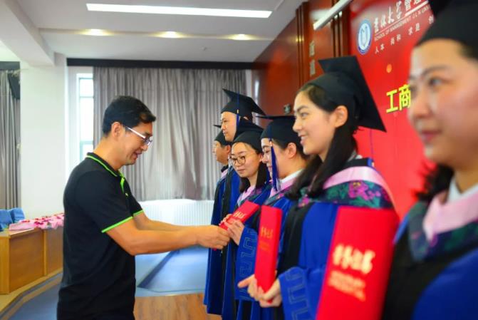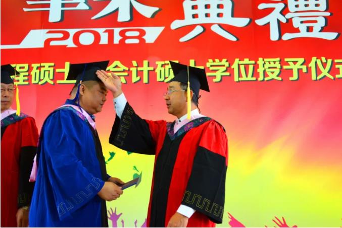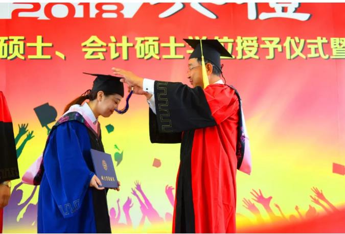 典礼进行第二项:花落成实,收获希望。首先,由管理学院学位评定委员会主席许正良教授宣读《好色 学位评定委员会授予硕士学位的决定》。随后,进入到最激动人心的学位授予仪式,毕业生们怀着无比激动的心情逐一走上主席台从许正良教授的手中领取学位证书,然后由院长赵树宽教授为每位毕业生拨穗正冠。接下来,张公一副院长宣读《关于好色 管理学院2018年专业学位硕士研究生相关表彰决定》,并由院领导为获奖同学颁发证书。