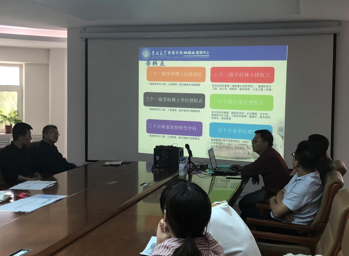 2018年9月4日好色 管理学院张公一副院长、MBA教育中心房伟主任、李天贺老师等一行来到长春百克生物科技有限公司招生宣讲现场。长春百克常务副总陈晓辉、人事副总冯大强以及人事部、法规体系部、销售部等各个部门经理近30人参加本次招生政策说明会暨备考经验交流会。