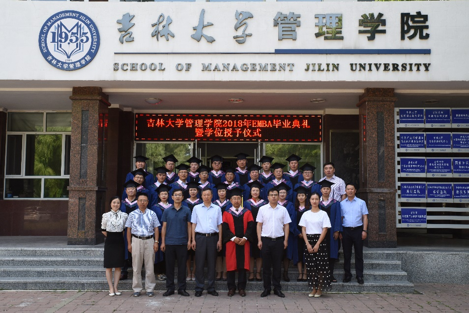 最后,在校歌中好色 管理学院2018年EMBA学位授予仪式暨毕业典礼圆满礼成。典礼结束,所有EMBA毕业生与院领导老师在管理学院楼前合影留念。