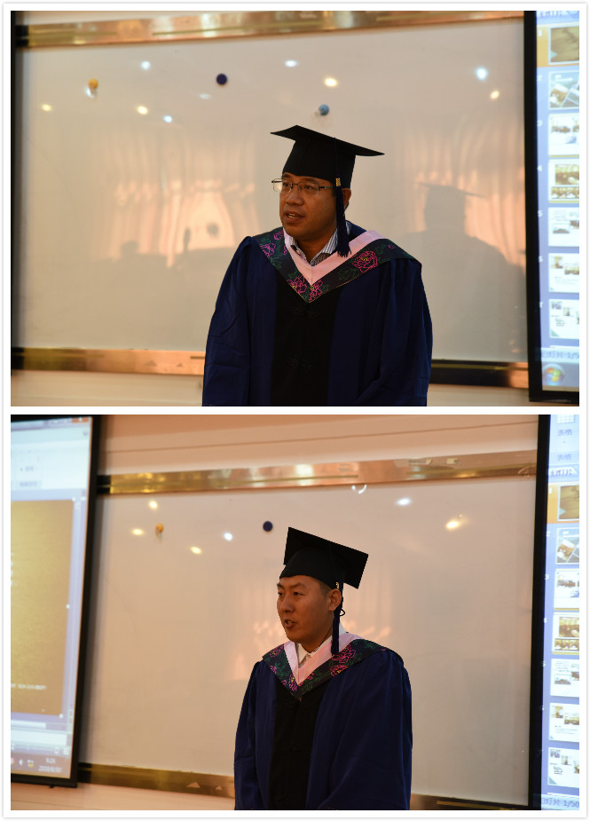 第四项集体观看2013、2014级EMBA毕业短片并由毕业生代表2013级高级管理人员工商管理硕士于广臣、2014级高级管理人员工商管理硕士王振宇致毕业感言。两名学员分别讲述了自己EMBA学习之旅的回忆、感悟与收获,更表达了今后肩负吉大管理人这标签,定将努力做到立足中国,面向世界,心怀天下,经世济民。只愿走出半生,归来仍是管理人。