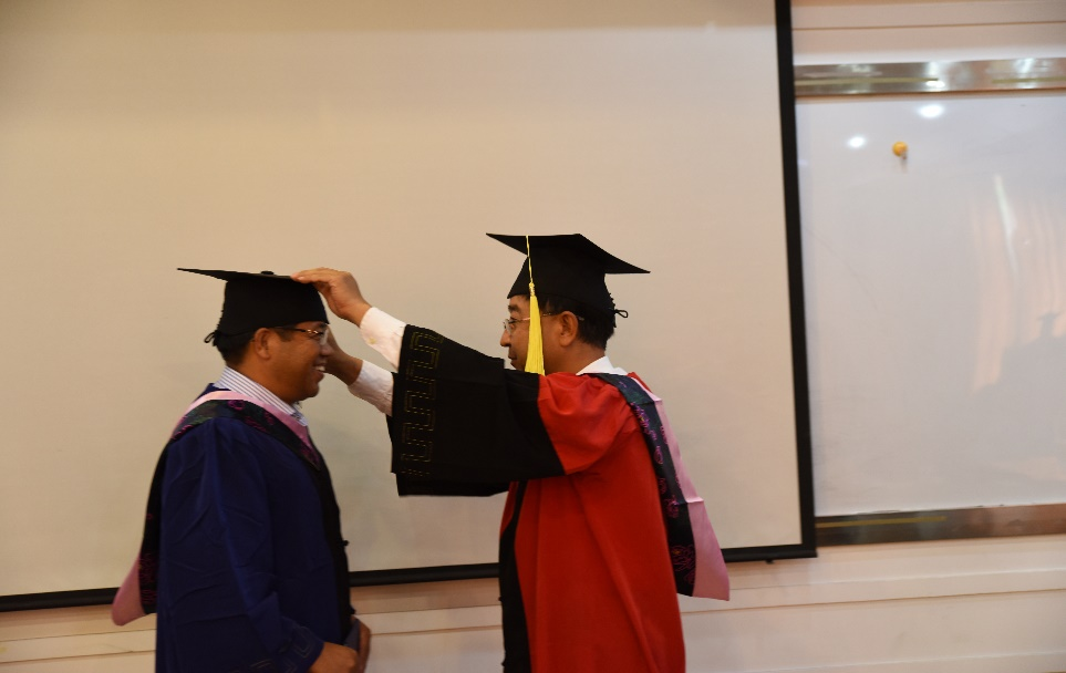 第三项由赵树宽院长为毕业生致辞。首先他代表管理学院向光临本次毕业典礼的各位来宾表示热烈的欢迎,向取得硕士学位的管理学院2013、2014级EMBA学员表示热烈的祝贺。院长在肯定了每位学员的不懈努力,以特有的毅力品质克服了工作及事业方面的诸多困难取得优异成绩的同时,对所有EMBA毕业生与在读学员提出了三点新要求:1、“千年暗室,一灯即明”。 院长希望大家今天毕业于吉大管院EMBA,日后也要养成并保持学习的能力。只有坚持学习才能有助于加快知识更新、优化知识结构、拓宽眼界和视野,从而增强工作的科学性、预见性,在时代浪潮中赢得主动、赢得优势、赢得未来;2、“为学之实,固在践履。苟徒知而不行,诚与不学无异。”院长希望每位管院EMBA毕业生牢记吉大管院EMBA“近贤达、破格局、论恒越之道”的初心,将所学到的知识和才华无私地奉献给国家的富强与民族的振兴事业,做到一个真正具有工匠精神的企业家。3.心系母校。“既入管院门,终为吉大人”希望每个人律己隆法,修身明德,不辱使命,不负重托。
