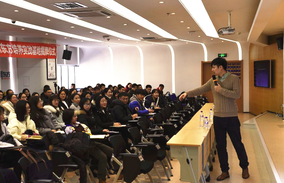 揭牌仪式后,参与仪式的专业学位研究生同学们在新东方学校进行了一次别开生面的商务英语会话与应用的实践活动。新东方学校的柳宁老师为同学们讲解了英美文化差异及交流方式的异同,生动地展示了商务沟通中的日常情景及英语运用的常见问题,带领同学们进行了沟通技巧性训练。柳老师亲切幽默,实践活动内容充实丰富,同学们互动积极,场内气氛十分高涨,反响热烈。