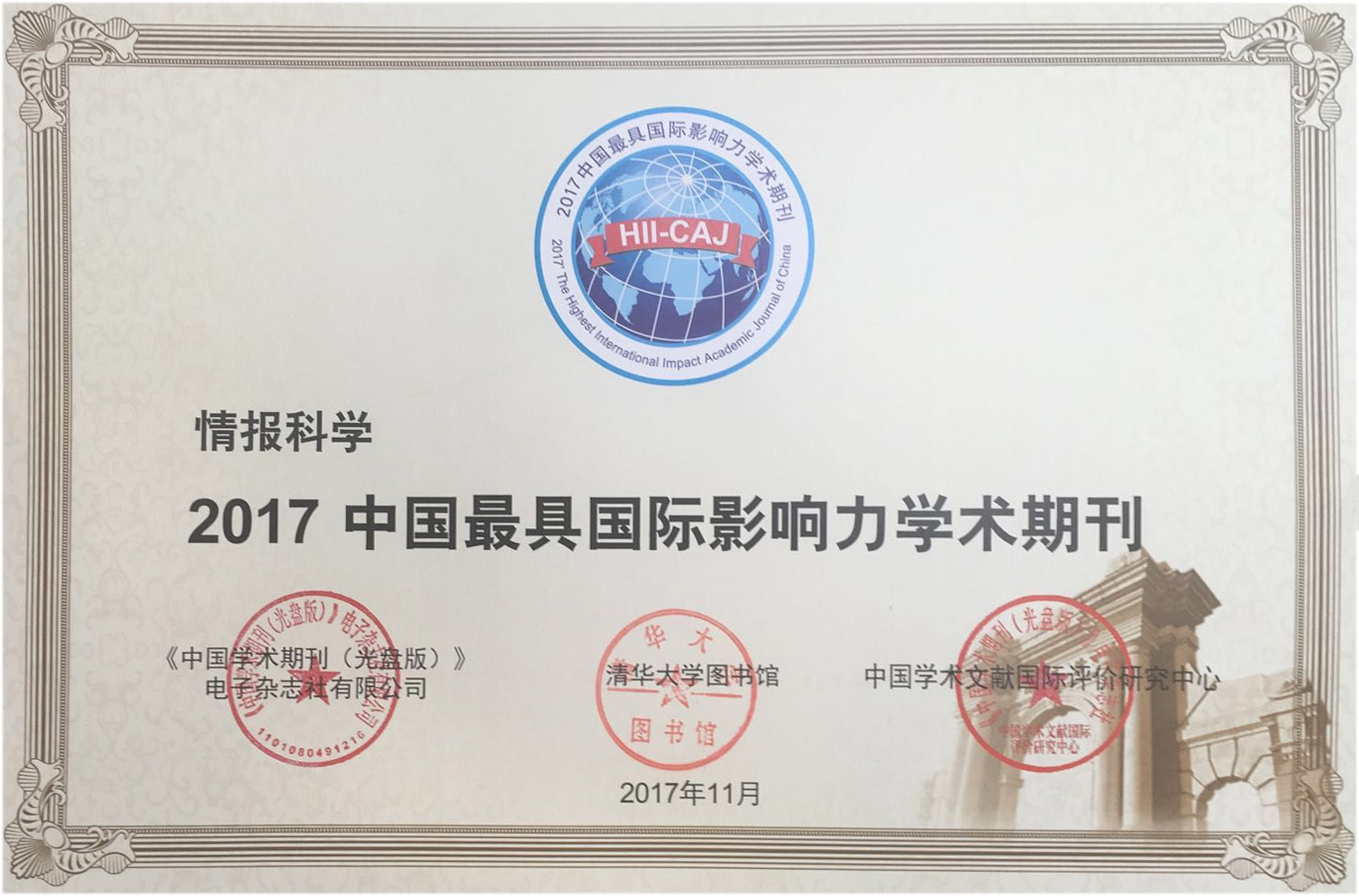 好色 《情报科学》获评“2017中国最具国际影响力学术期刊”(人文社会科学),自2013年以来,《情报科学》已连续五年获此殊荣。