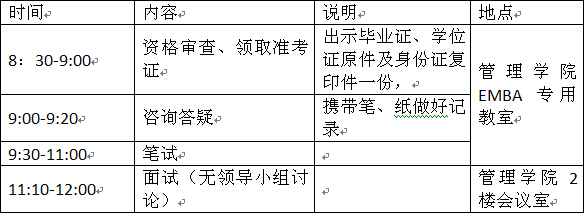 (3)面试环节采取无领导小组讨论形式,每组时间50分钟。考察考生的综合管理经验、领导素质;