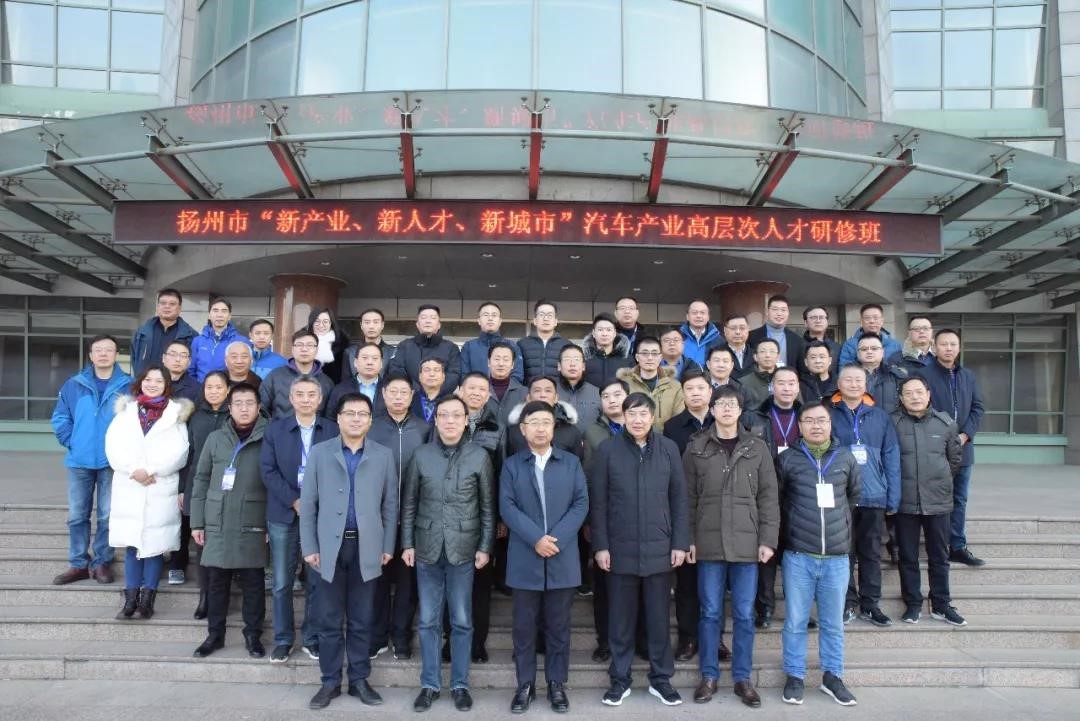 (扬州市“新产业、新人才、新城市”汽车产业高层次人才研修班于逸夫楼前合影)