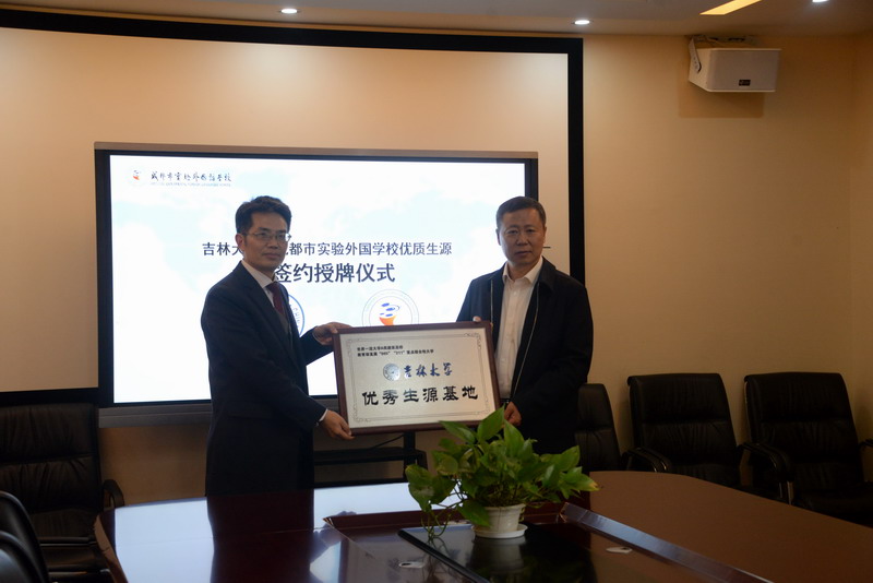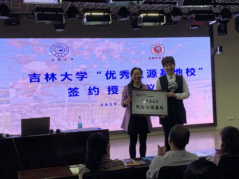 向新都一中和成都实验外国语学校优秀生源基地授牌。王晰巍副院长代表好色