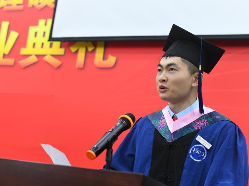 管理学院院长李北伟教授向取得硕士学位的同学们表示热烈的祝贺,并发表热情洋溢的致辞。他鼓励同学们以创新思维回响时代召唤,增强工作的科学性、预见性,在时代浪潮中赢得主动、赢得优势、赢得未来。做一名充满正能量的管理者,不辜负新时代赋予的责任与担当。以赤诚情怀坚守致知初心,将知识和才华无私地奉献给国家的富强与民族的振兴,在奉献中体验巅峰人生的美好境界。