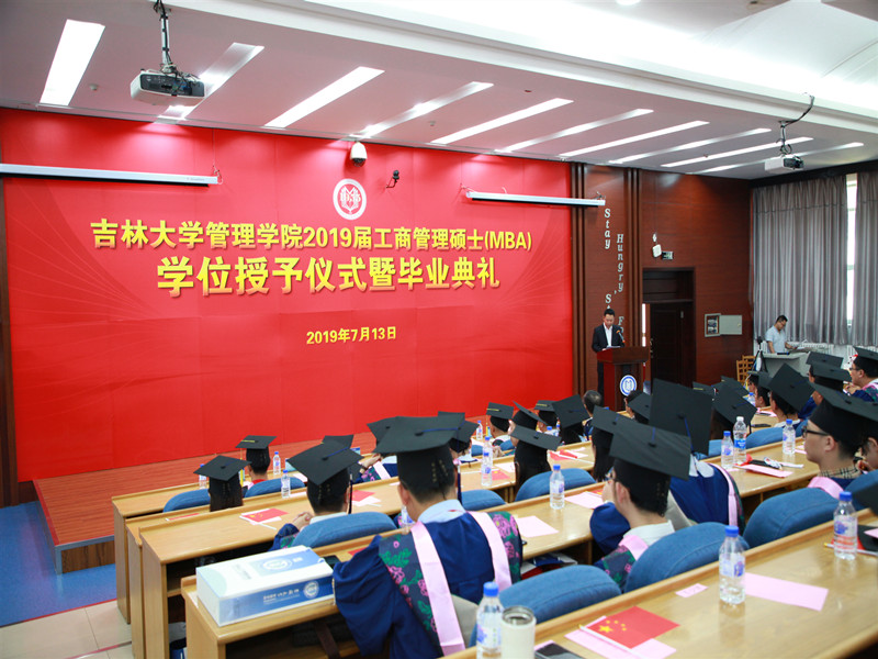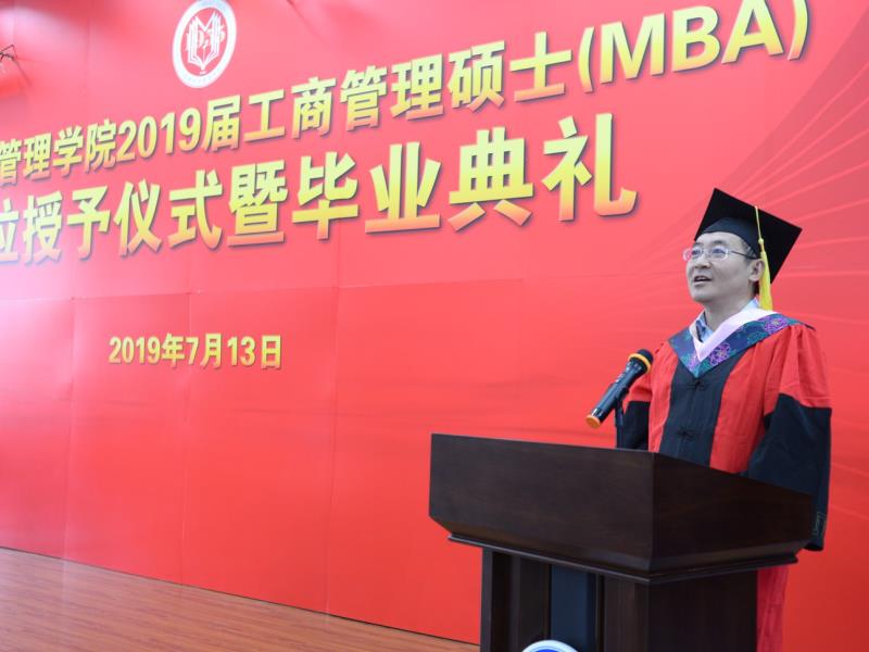 管理学院2019届工商管理硕士(MBA)学位授予仪式暨毕业典礼在南岭校区逸夫教育大楼敬文厅隆重举行。学院党委书记张兴林老师,院长李北伟教授,副院长陈海涛教授,副书记方长春老师,副院长王晰巍教授以及教师代表出席了本次典礼,见证了2019届毕业生们的美好时刻。本次毕业典礼由管理学院专业学位办公室主任房伟老师主持。