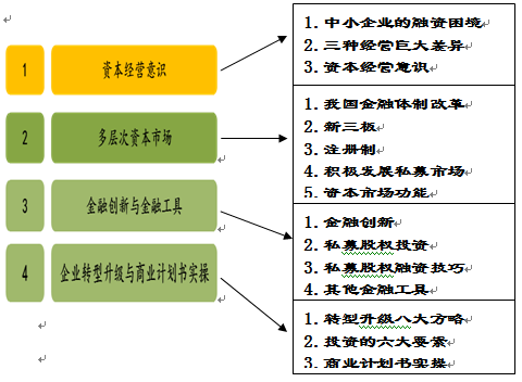本课程旨在揭开场内交易市场与场外交易市场的谜底,向广大中小企业经营者们展示多层次资本市场的巨大魅力,介绍多层次资本市场的融资工具及延伸出来的多种融资手段。让广大中小企业经营者们先入门,再深造。学会利用资本市场这个巨大的、无限期的、可以多次重复利用的融资平台,为企业发展发挥直接融资功能,推动企业实现跨跃式发展。