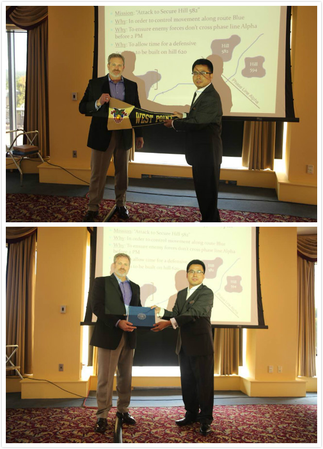 管理学院EMBA办公室副主任张公一副教授对此次课程进行了总结,并代表学校向肖恩上校馈赠了礼物,肖恩上校表示感谢并向每位学员颁发了结业证书。