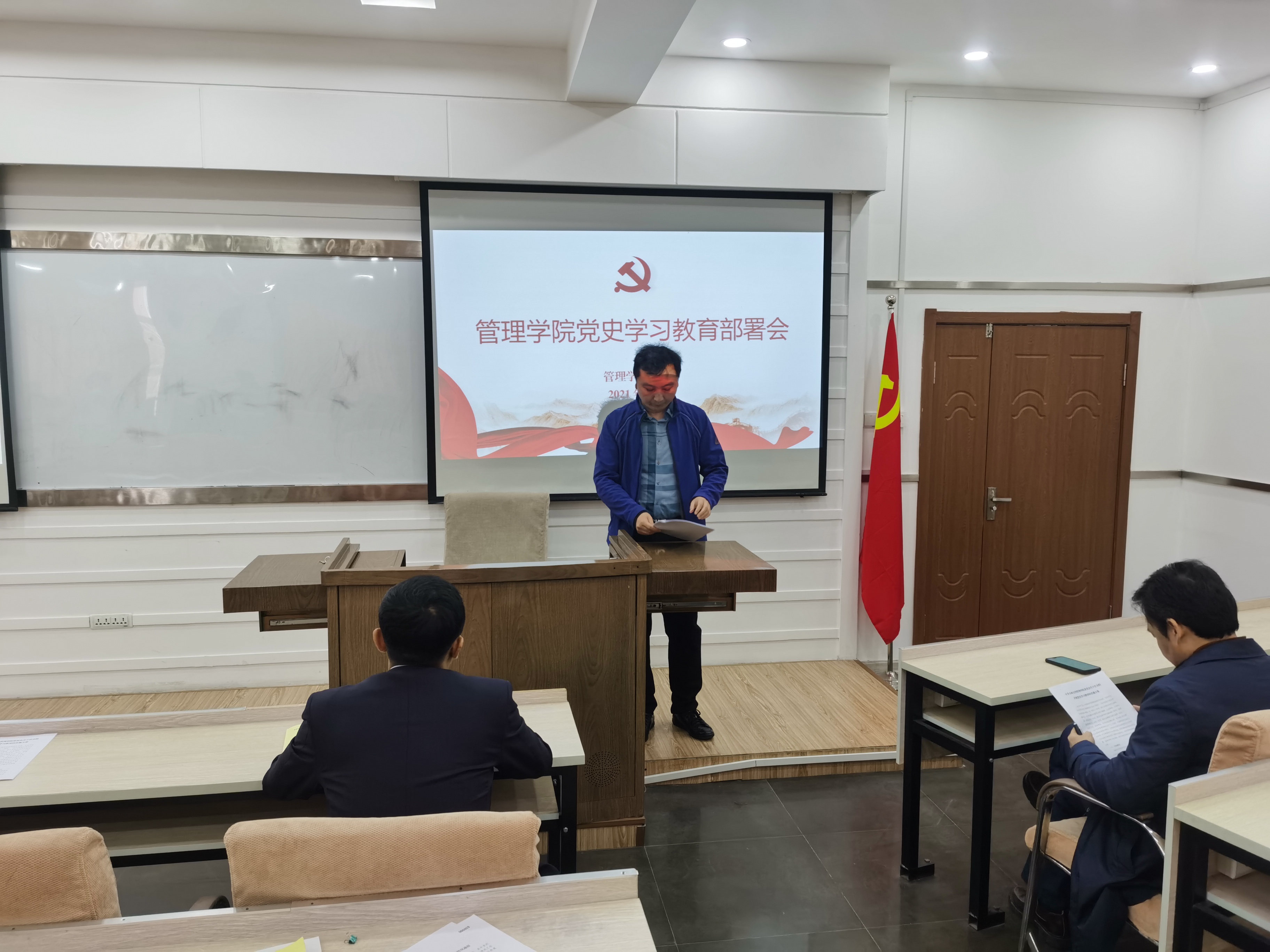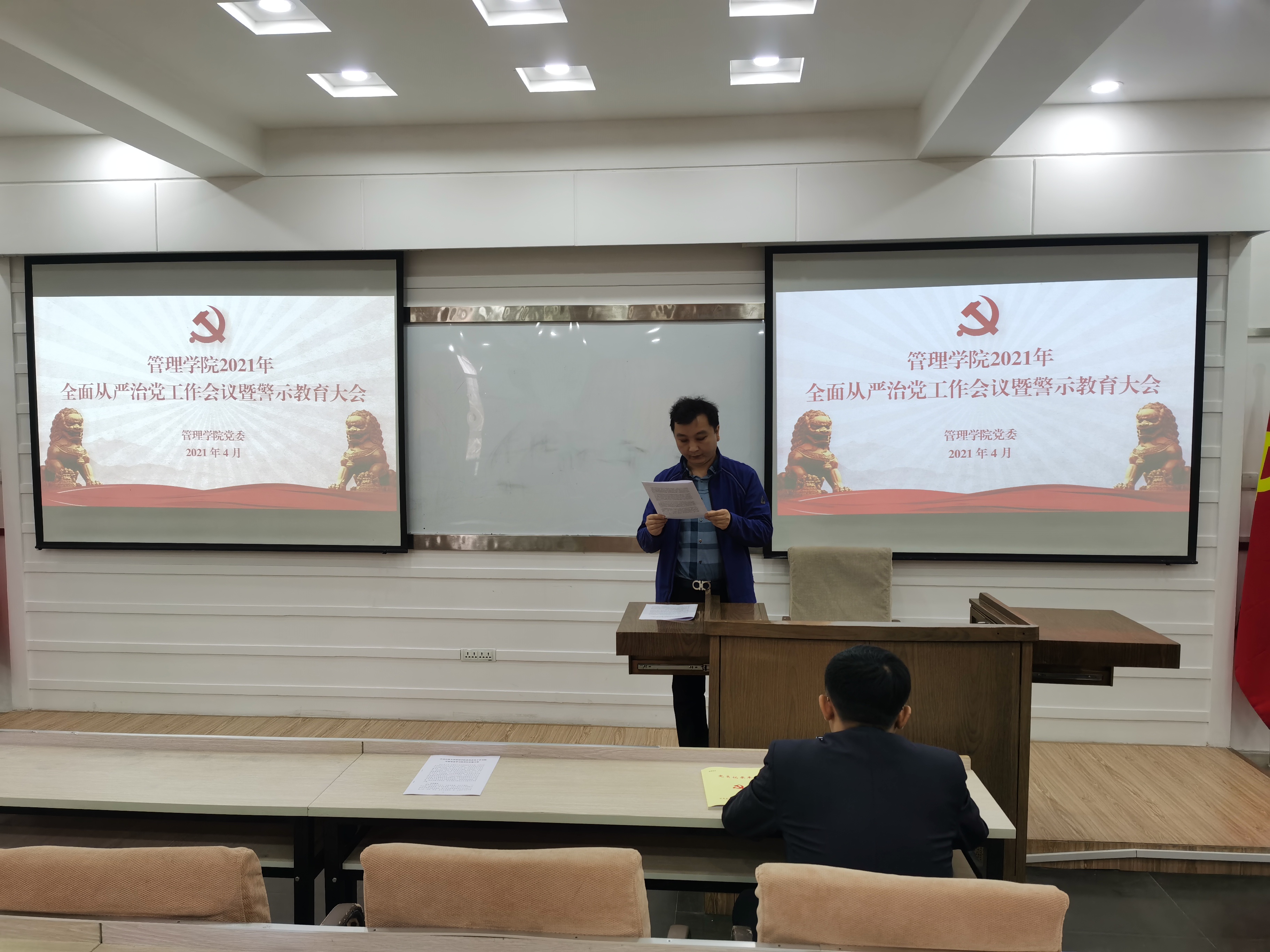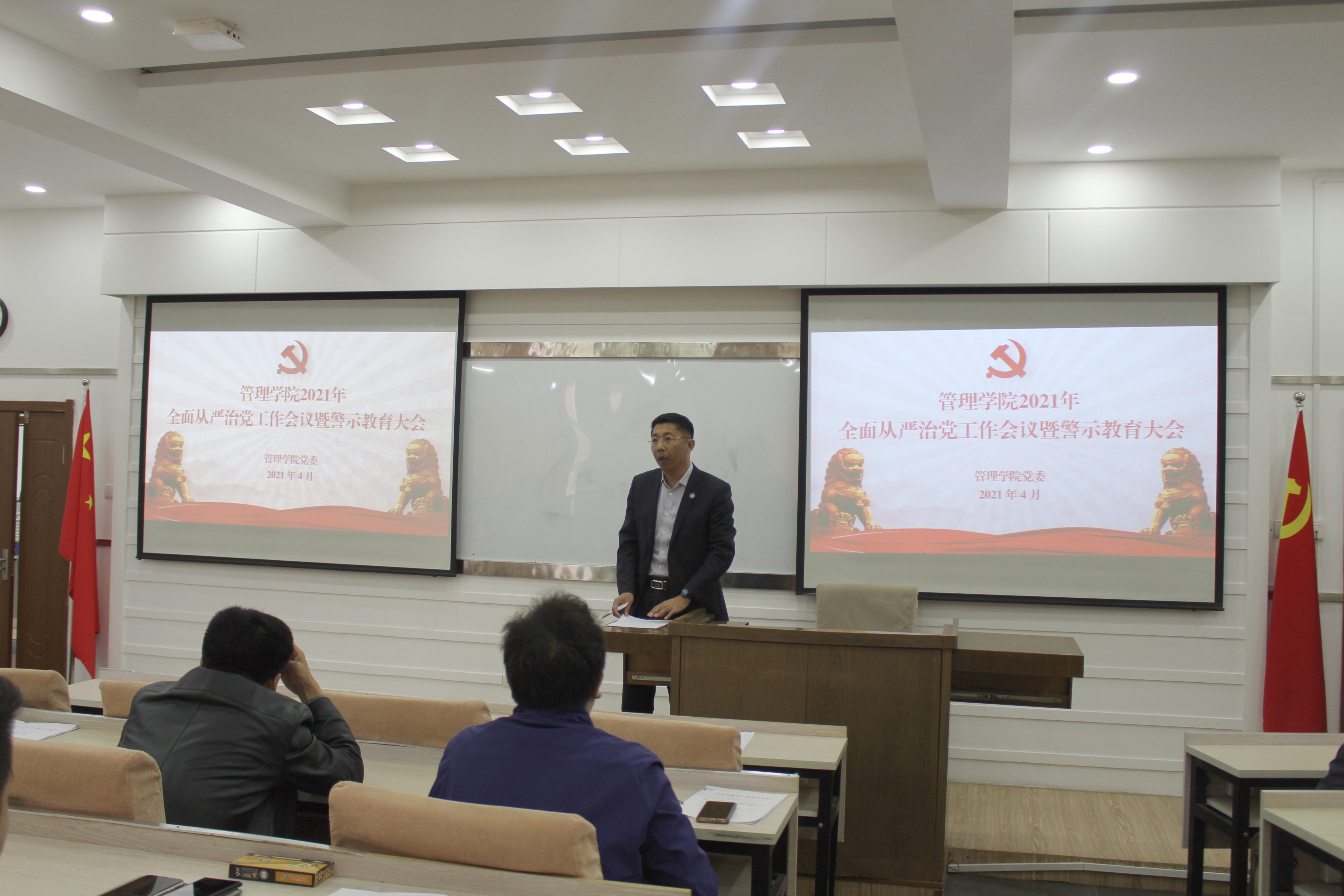 4月23日,管理学院党委在第三会议室召开党史学习动员大会暨全面从严治党警示教育大会,管理学院领导班子成员、党委委员、纪委委员、各党支部书记、机关各办公室主任和学生党员代表出席会议,会议由学院党委书记赵军主持。
