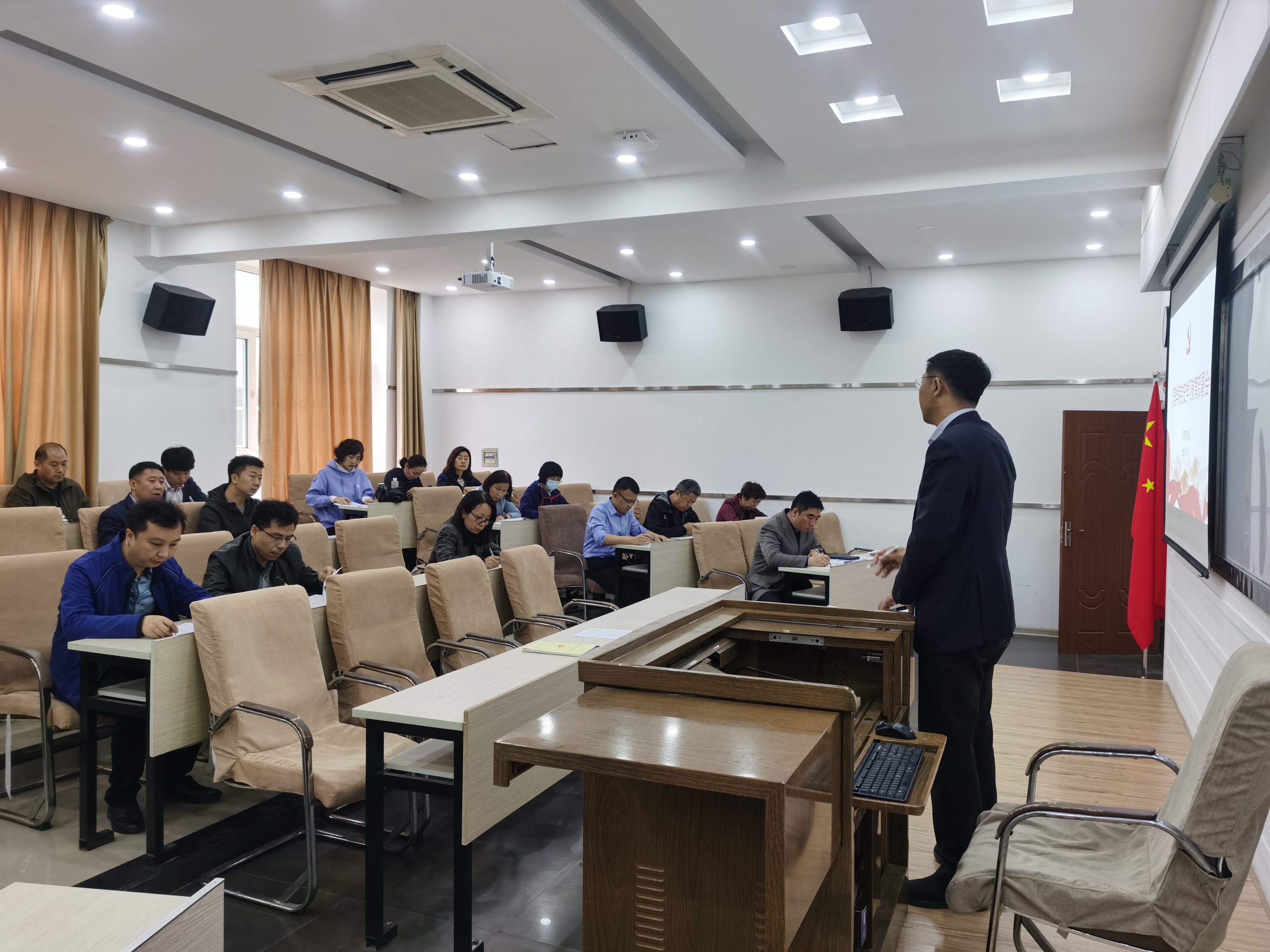赵军书记在动员讲话中讲到:全院党员要充分利用好这次学习教育机会,挖掘好百年党史的“精神富矿”,回望过去奋斗路、走好当下奋力路、眺望未来奋进路,在学习中升华初心,在实践中担当使命,奋力谱写中国特色、世界一流大学建设的新篇章,以优异成绩迎接中国共产党成立100周年!对党史学习教育工作赵军书记提出了三点要求:一是要深刻认识党史学习教育的重大意义。要把党史学习教育作为当前一项重要的政治任务,作为纵深推进全面从严治党、提高党建质量的重要抓手,作为推动学校事业发展的重要契机,充分彰显党史学习教育的思想引领优势,以党史学习教育来引领发展、推动发展。二是要准确把握党史学习教育的重要内容。要坚持不懈用新思想指导学院改革发展重要任务。要将党史学习教育与学院“十四五”规划建设发展相结合,把党史学习教育与抓好各项工作任务落实结合起来,开创学院建设发展的新局面。三是要严格落实方案安排,党员班子成员要严格落实“一岗双责”,科学组织安排、统筹抓好落实,广泛宣传营造氛围、分类指导确保实效。