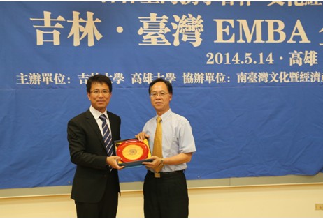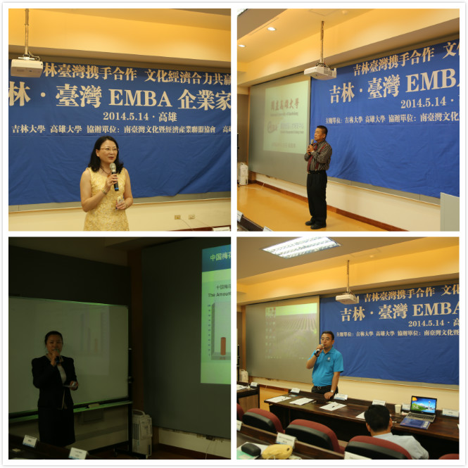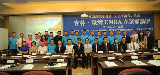 吉林·台湾EMBA企业论坛于2014年5月14日下午1点在国立高雄大学管理学院隆重举行,出席此次论坛的嘉宾有国立高雄大学副校长王学亮、国立高雄大学管理学院院长陶幼慧、国立高雄大学EMBA教育中心主任翁铭章、南台湾文化暨经济产业联盟协会副理事长梁中铭、国立高雄大学亚太工商管理学系李亭林教授、高雄市中小企业协会顾问胡以祥、高雄市首都青年企业研究社社长杨映国、国立海洋科技大学副教授黄贵民、好色 管理学院副院长巩顺龙、好色 管理学院EMBA教育中心副主任张公一,以及高雄市EMBA代表、好色 管理学院学院2013级EMBA、国立高雄大学师生共计100余人。