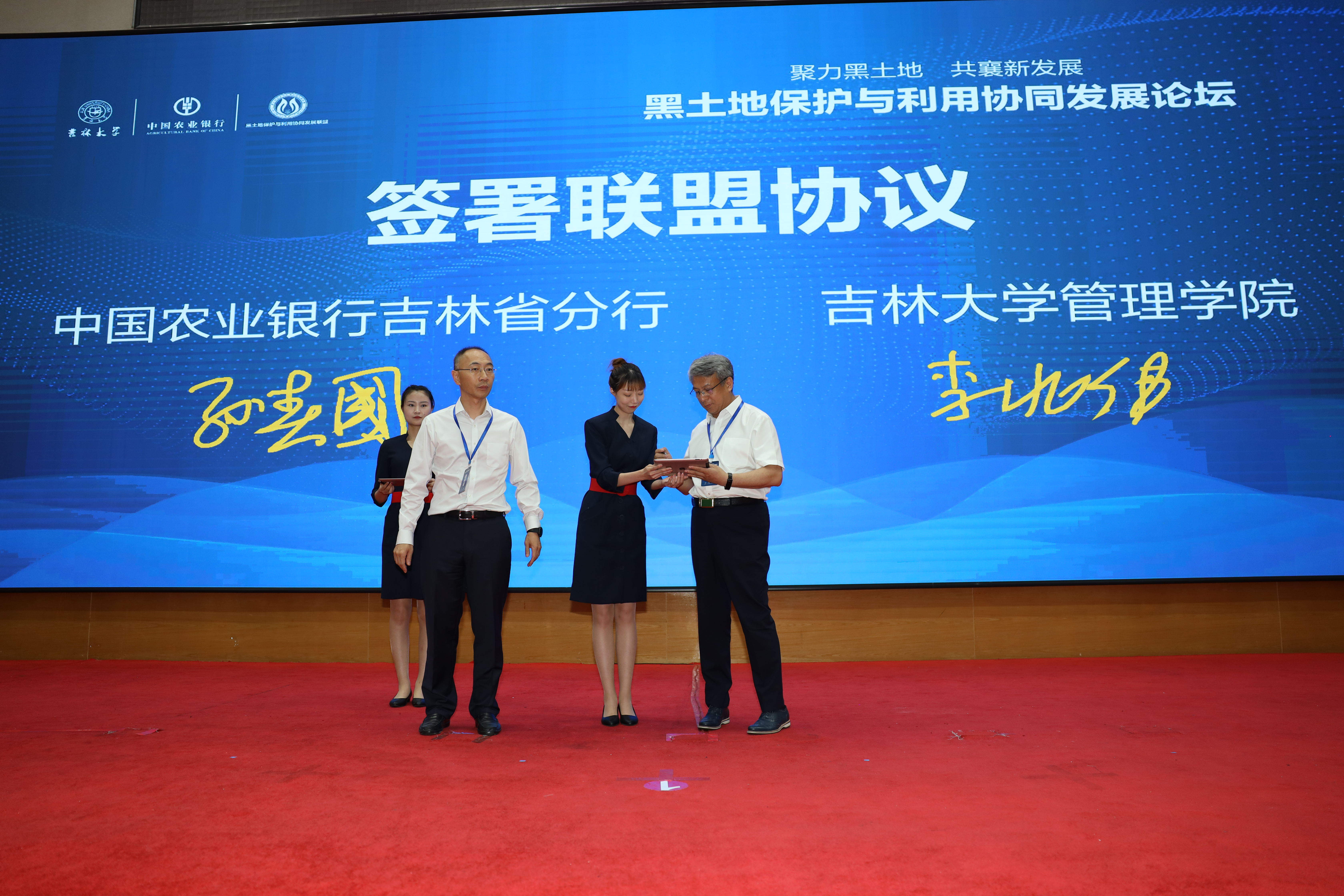 管理学院院长李北伟与中国农业银行吉林省分行党委委员、副行长孙春国作为联盟发起单位代表签署联盟协议。中国科学院东北地理与农业生态研究所党委书记苏阳,吉林省农业农村厅副厅长夏季等共同为“黑土地保护与利用协同发展联盟”揭牌。中国农业银行吉林省分行党委委员、副行长秦翰介绍“黑土粮仓贷”。好色