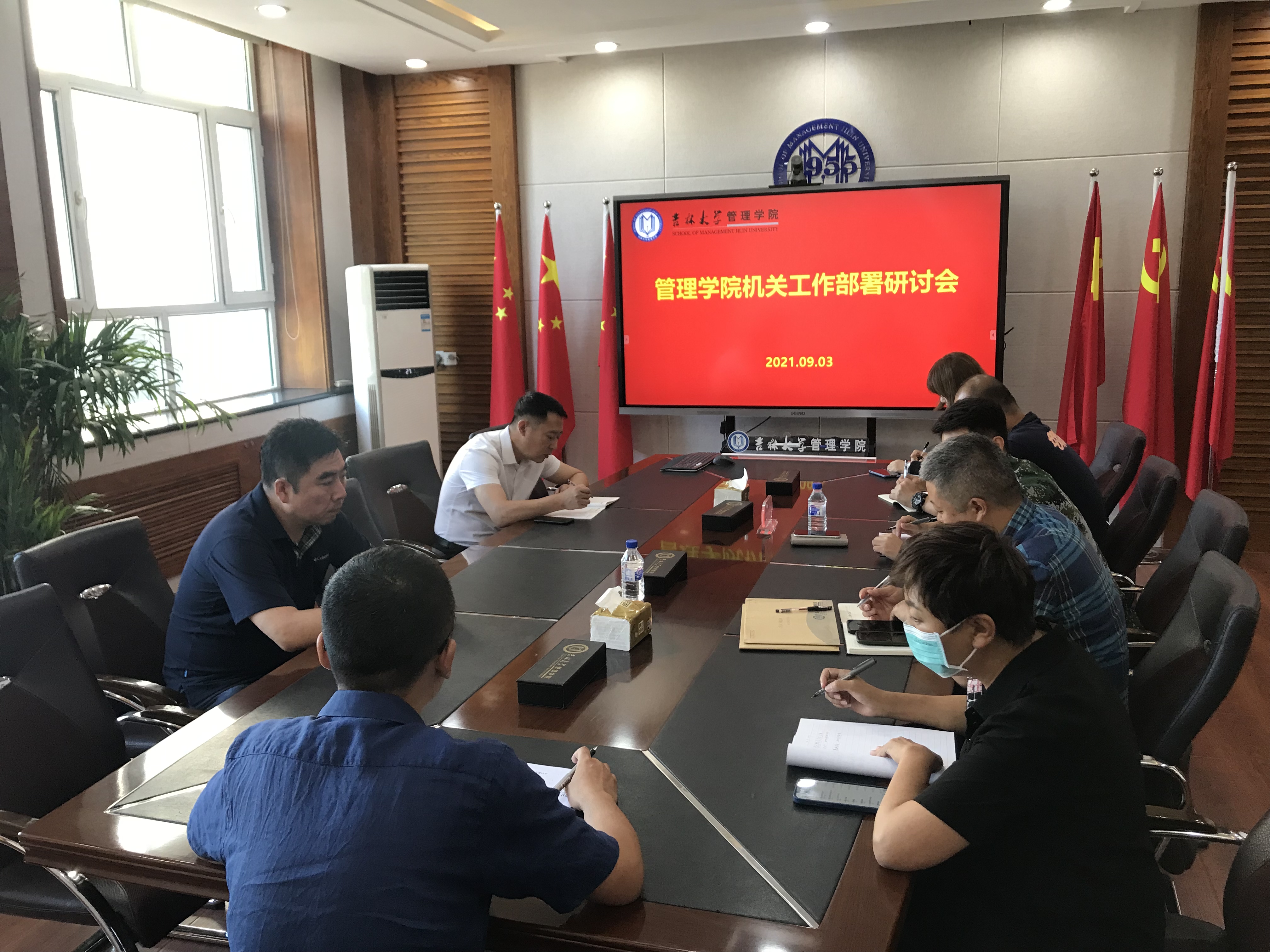 9月3日上午,管理学院在第一会议室召开机关工作部署研讨会,学院机关各科室主任参加会议,会议由行政副院长马腾主持。