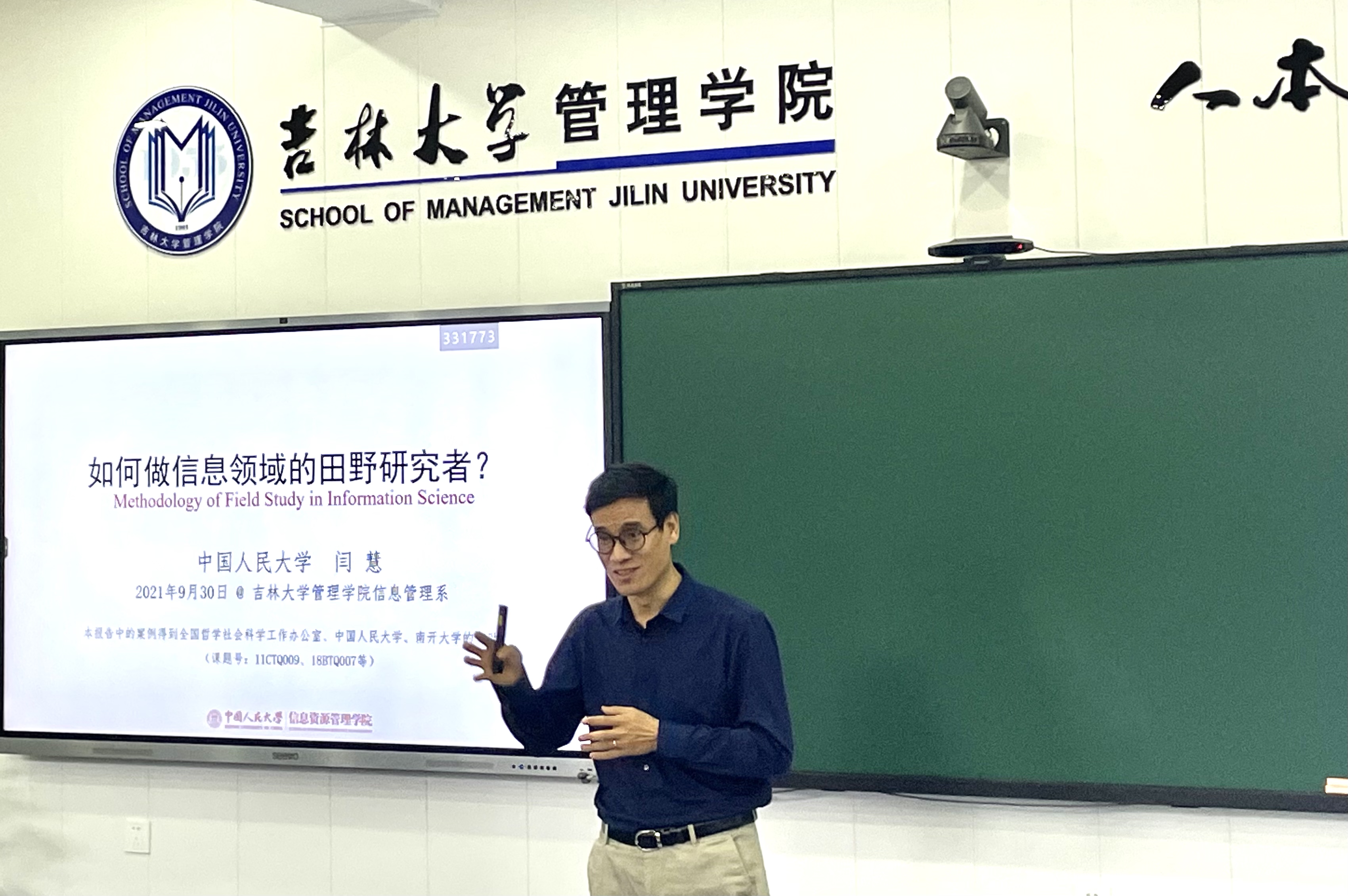 “情报学+”研究生学科交叉融合学术交流中心发起的“前沿学术专题讲堂”系列活动首场活动,在管理学院213教室成功举办。本次活动由管理学院信息管理系张卫东教授主持,邀请中国人民大学信息资源管理学院副院长、博士生导师闫慧教授作了题为“如何做信息领域的田野研究者?”的学术报告。
