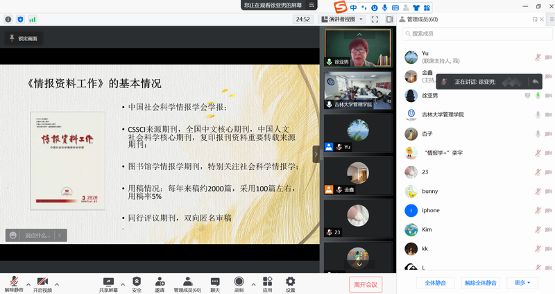为使师生更深入地了解学术期刊的具体选稿用稿准则与规范,11月19日上午,中国人民大学书报资料中心社会编辑部主任,《情报资料工作》杂志副主编徐亚男教授应邀为学院师生做《学术期刊的选稿标准与用稿规范—兼谈图情档学术热点》的学术报告。线上线下共100余名教师和学生聆听了报告。