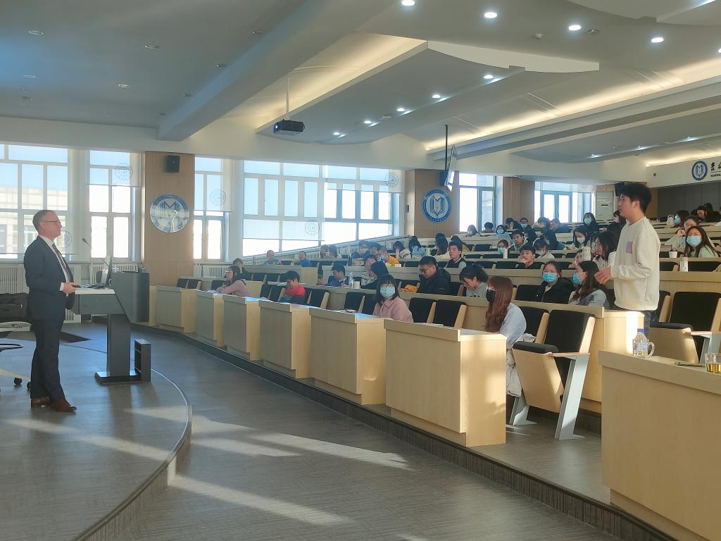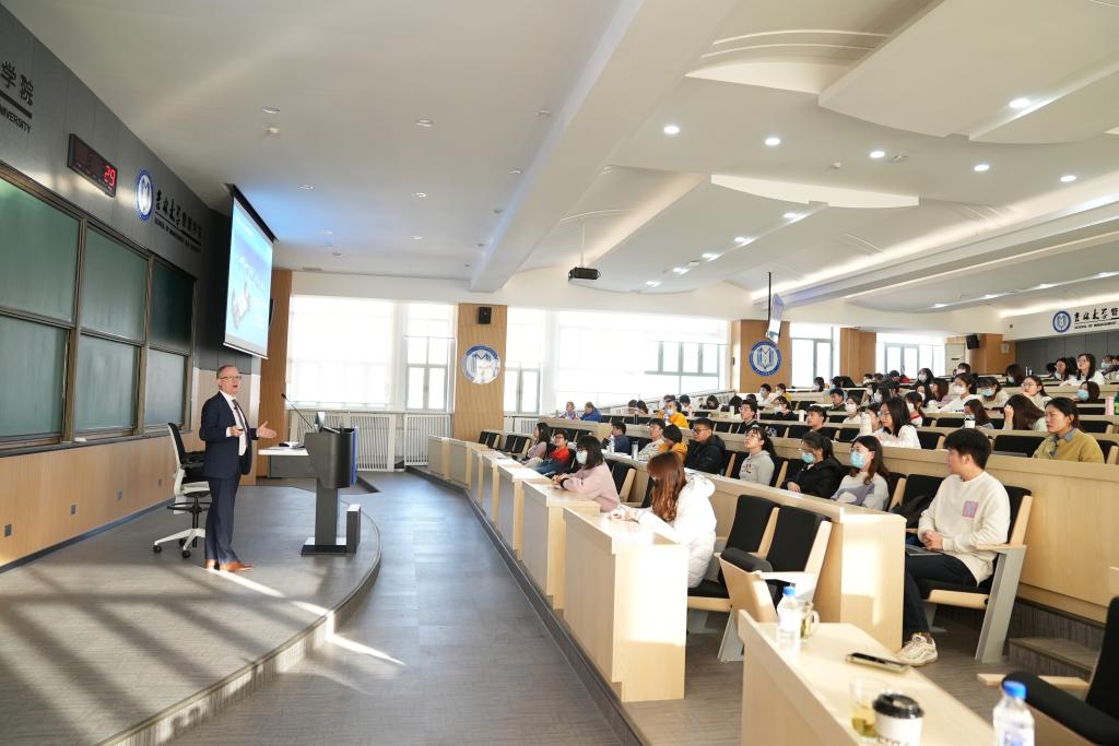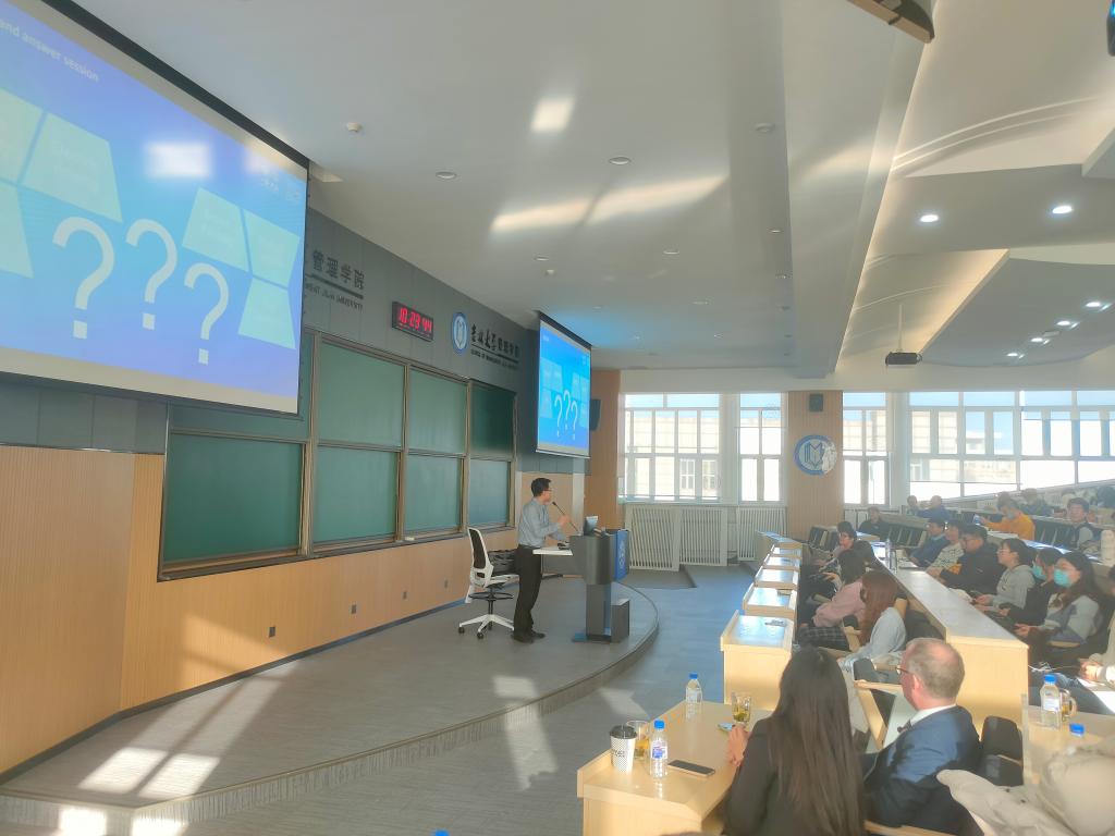 学生以英德双语就“双碳战略对汽车行业的影响”、“汽车行业新能源竞争现状与未来机会”、“芯片供应情况对汽车行业发展限制”、“数字化技术给大型制造业带来的机会与挑战”等问题与报告人Andreas Dick副总经理进行了热切交流。最后,管理学院副院长张公一教授对本次学术汇报内容进行了总结与点评。