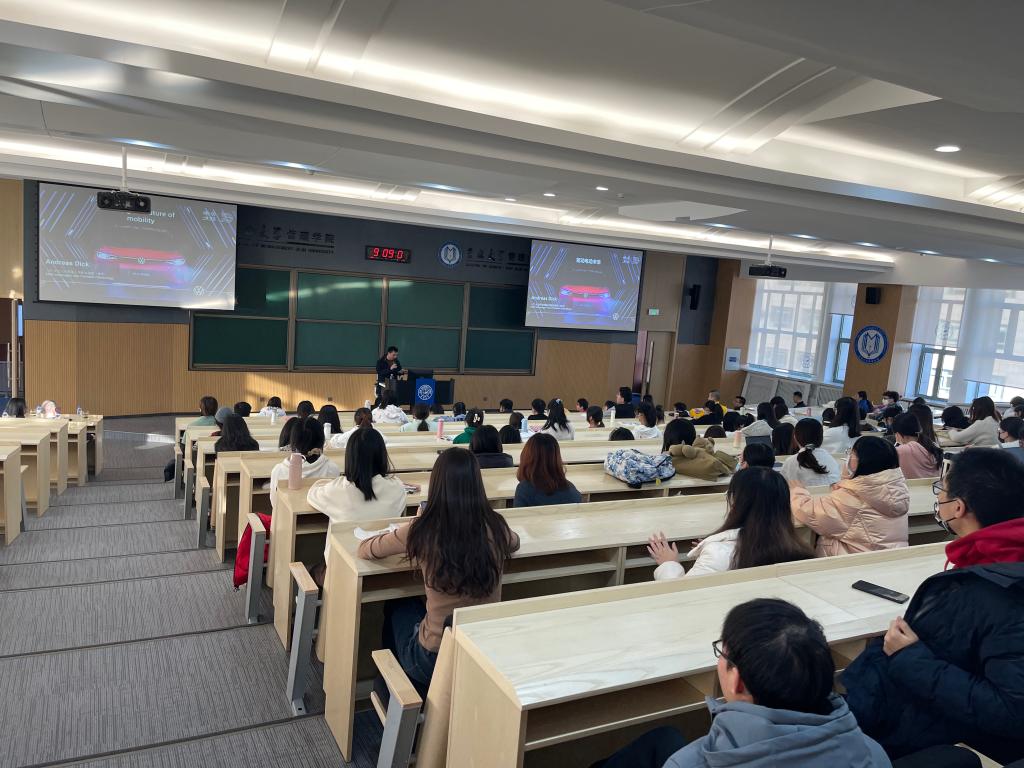 南岭校区逸夫楼 516教室举办了学术报告“DRIVING THE FUTURE OF MOBILITY / 驱动电动未来”,来自相关学科的教师、研究生及本科生参加了此次学术报告。学术报告由一汽-大众技术副总经理Andreas Dick受邀汇报,党委副书记兼副院长彭鹏副教授主持,管理学院副院长张公一教授总结点评。
