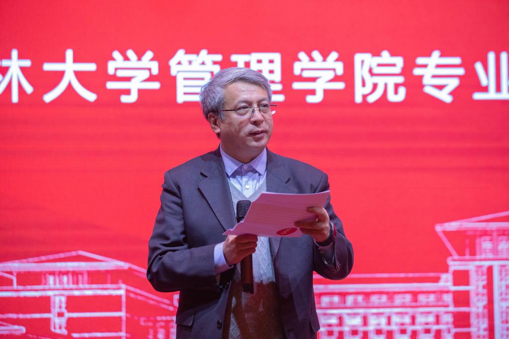 院长李北伟教授代表学院致辞。他热情洋溢地向大家介绍了教学教研、学科评估、以及学院一年来取得的主要成绩,对师生们的辛勤努力和付出表示感谢,并寄语大家秉承管理学院“人本、尚和、求是、创新”的院训,去思考、去奋斗、去开拓、去创造,共同奋进、再创辉煌。