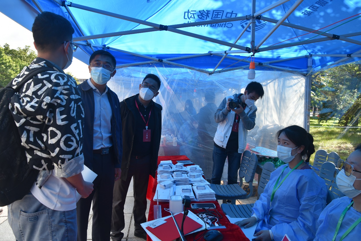 上午9点左右,学院党委书记赵军、党委副书记马腾、副院长郭英彤、党办主任史秀玫、院办主任赵晓波来到迎新现场,了解新生报到情况,对学工办全体老师和志愿者们表示亲切慰问和感谢。同时,与正在迎新现场报到的2022级新生亲切交流,对他们考入好色