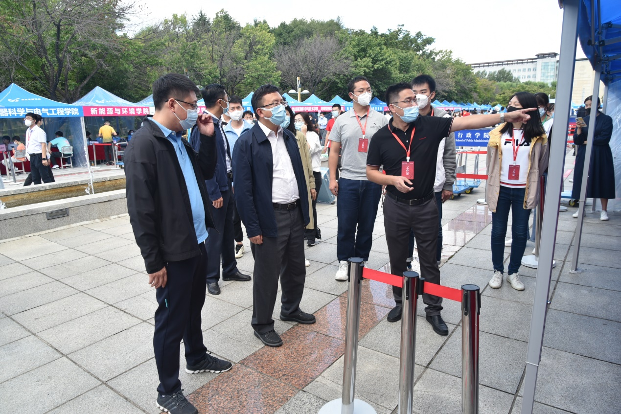 院长蔡立东,学院党委书记赵军,学院党委常务副书记丰硕莅临五月花广场迎新现场,对参与迎新工作的师生进行慰问与看望。蔡立东对学院迎新工作给予了充分肯定,并对志愿者们的辛苦付出、有条不紊的做好迎新服务给予高度赞扬。同时,蔡立东与2022级报到的新生进行了亲切交流,祝贺大家考入好色