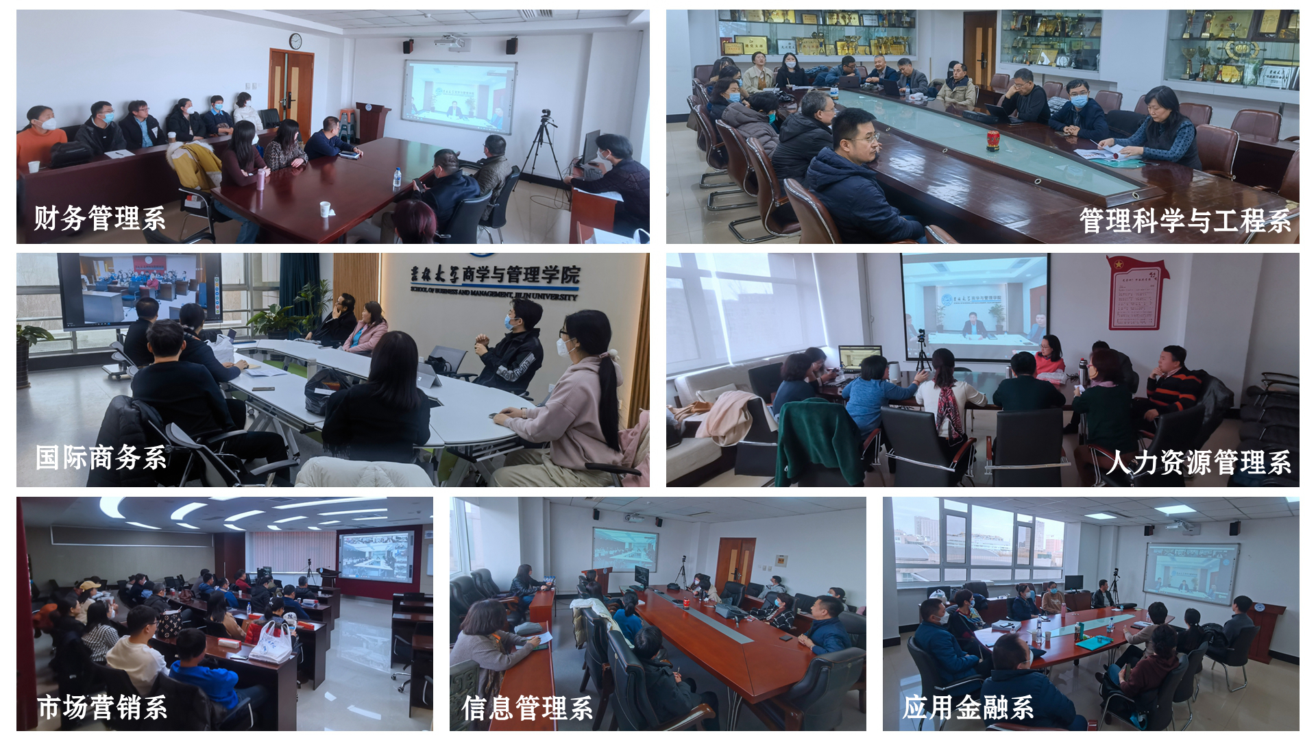 召开第一次线上教职工大会,各教学系教职工在各系会议室通过线上线下相结合的方式参会,会议由学院党委书记赵军主持。