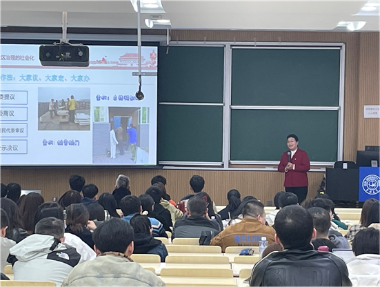 吴亚琴从社区治理的社会化、法制化、智能化三个方面向同学们分享了长山花园社区治理工作的经验和成功做法,并通过大量实例对创新基层思想政治工作、有效化解社会矛盾、切实解决群众实际困难进行了生动讲解。她把居民当亲人,为居民群众办实事、解难事,用实际行动深刻诠释了一名共产党员的砥砺担当,践行了一名共产党员的初心和使命。