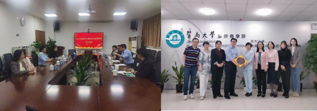 此后,调研组又赶赴暨南大学国际商学院进行调研。暨南大学国际商学院成立于2010年,其是在原暨南大学珠海学院企业管理系、金融学系、管理科学与工程研究所等系所的基础上整合而成,经过多年的建设和发展,整合了一支高素质的师资队伍,为社会培养和输送了一批批有用人才。暨南大学国际商学院副院长姜丽群老师、工商管理教研室主任苏晓艳老师、莫紫莹老师以及教务团队参与了交流会。