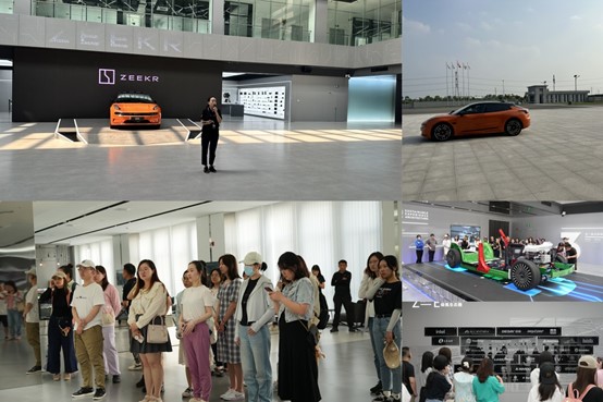 师生们参观了极氪数字展厅,了解“极氪”品牌的诞生和“以零为始,打破边界,以极客精神,共创极致体验的出行生活”先进服务理念;走进科技、高效、智能、自动化的焊装车间和总装车间,感受中国智造的数字化、标准化、精准化;试乘试驾极氪001、009两款车型,亲身体验“中国制造”的精益求精,感受“中国智慧”的力量与速度。