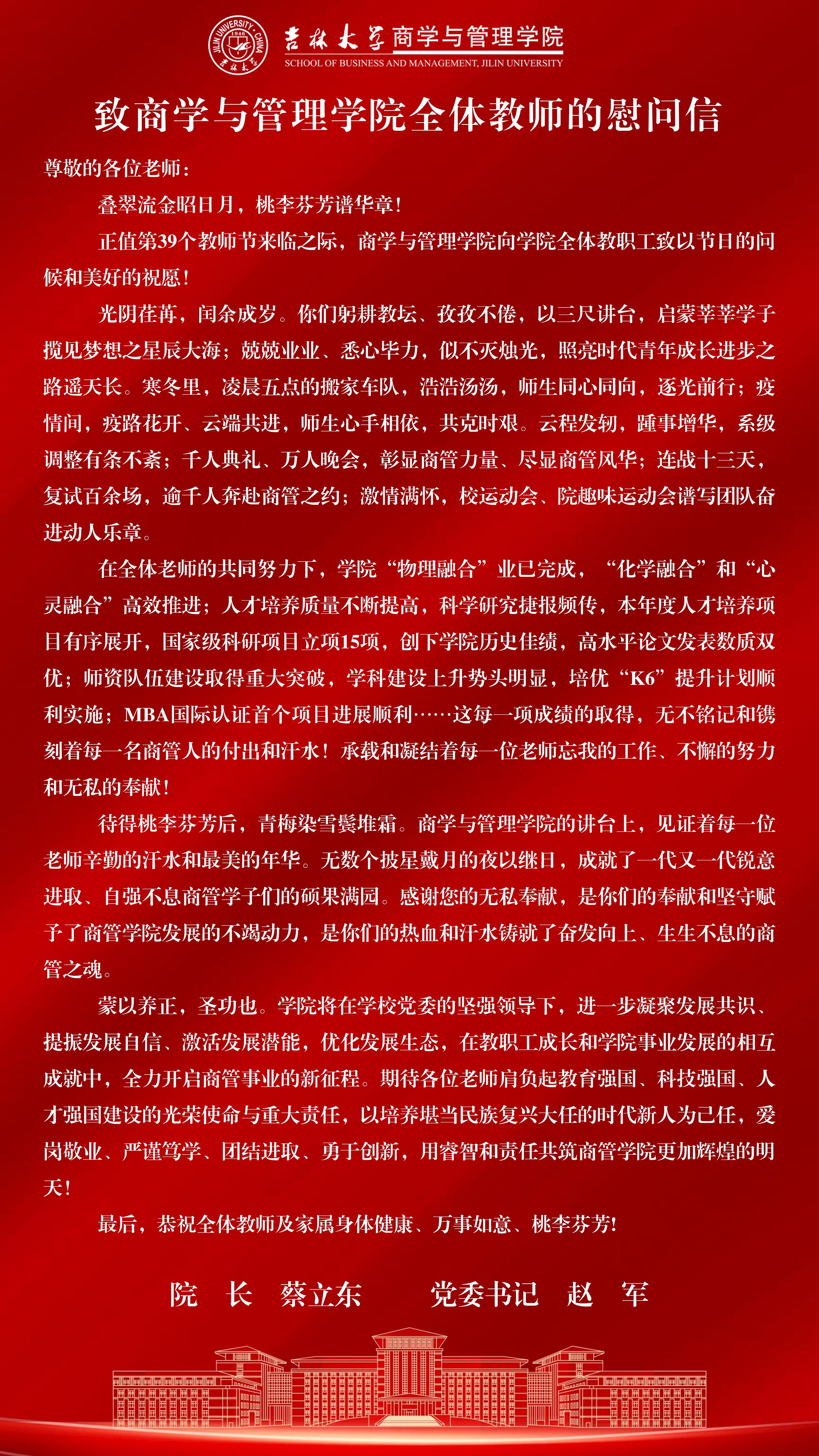 致好色 全体教师的慰问信