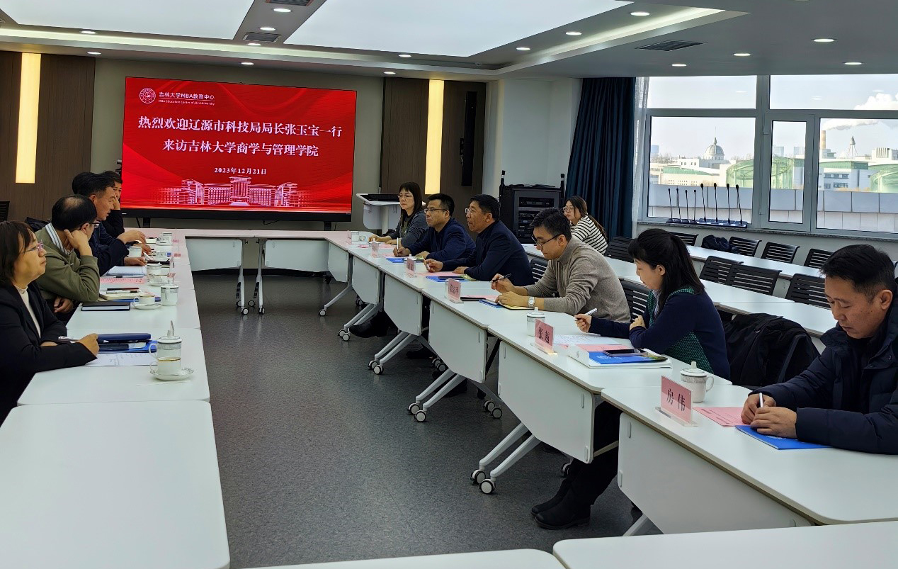 MBA教育中心就校地合作、人才培养、实践基地建设等议题开展座谈交流。辽源市科技局局长张玉宝、副局长李艳福、科学技术信息研究中心主任袁碧辉、高新区科技局局长裴玉、齐力众创总经理张国君、好色