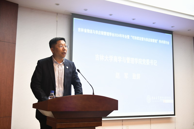党委书记赵军教授致辞。赵军书记在致辞中对莅临本次研讨会的各位专家、来宾表示热烈欢迎和诚挚感谢。他衷心希望,在国家加快发展新质生产力、推动产业链供应链优化升级的进程中,学院物流管理专业能够不断提升科研能力和高质人才培养,为物流产业发展提供吉大商管的助力。