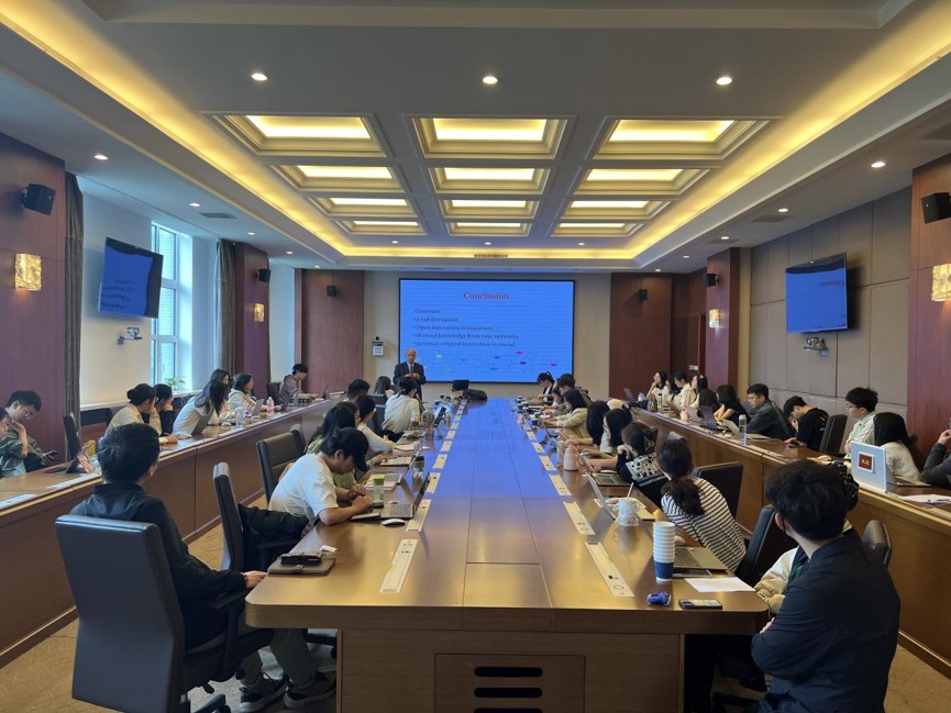 第二场报告围绕《Academic Guidance on Innovation and Entrepreneurship》这一主题展开,同学们针对文献回顾、发现研究问题、寻找理论基础以及机器学习等新兴研究方法对学术研究的影响等问题踊跃发问,Shaker A. Zahra教授结合自身研究经验一一做出悉心指导。他深入浅出的讲解给在场师生留下了深刻的印象,并引发了同学们的积极参与和热烈讨论。