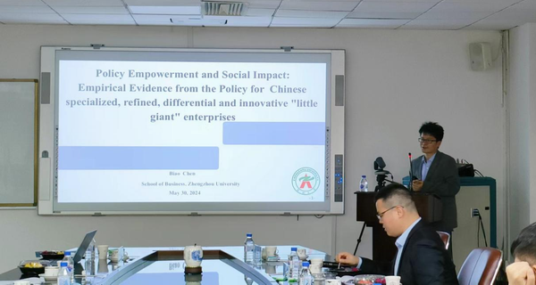 中文论坛部分,郑州大学商学院的陈彪老师从政策角度出发,带来了“‘专精特新’企业的政策赋能与社会影响力:来自中国的经验证据”的报告,分析了政策如何赋能“专精特新”企业,并探讨了这些企业对社会影响力的贡献。