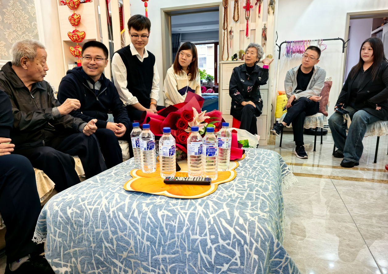 MBA的师生一行又来到百岁抗美援朝英雄高永清老人的家中进行探访。一进门,老人穿着整齐的军装早已等候多时,胸前的军功章熠熠生辉。老人与同学们进行了亲切交谈,他虽已百岁高龄,但精神矍铄,言语清晰,思维敏捷。老人的脸上刻满了岁月的痕迹,那每一道皱纹都仿佛是一段历史的印记。同学们围坐在老人身边,没有过多激昂的话语,却有着心灵的沟通。老人的每一个眼神、每一个微笑,都仿佛在诉说着那段波澜壮阔的历史。大家静静地陪伴在老人身边,聆听着历史的无声回响。在交流中,同学们感受到了老人身上历经岁月沉淀的那份从容与坚毅。他们仿佛看到了老人在抗美援朝的战场上,不畏强敌,英勇奋战的身影。那是怎样的一种勇气和担当,让他们在枪林弹雨中为了国家的尊严和和平,义无反顾地奉献出自己的一切。