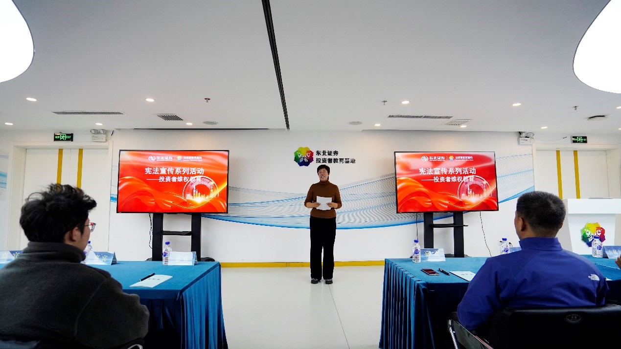 2022级信用管理专业全体本科生,在应用金融系主任顾宁教授、副主任张小宇教授带领下,赴东北证券投资者教育基地开展认知实习。本次活动由吉林证监局和东北证券联合组织,并邀请到了吉林证监局法规处宿晓处长、吉林省证券业协会肖刚副秘书长以及东北证券投资者教育基地负责人刘怡姝参与指导。活动旨在让学生深入了解证券市场发展历程与运作模式,同时通过宪法宣传系列活动增强法律意识和投资者权益保护意识。