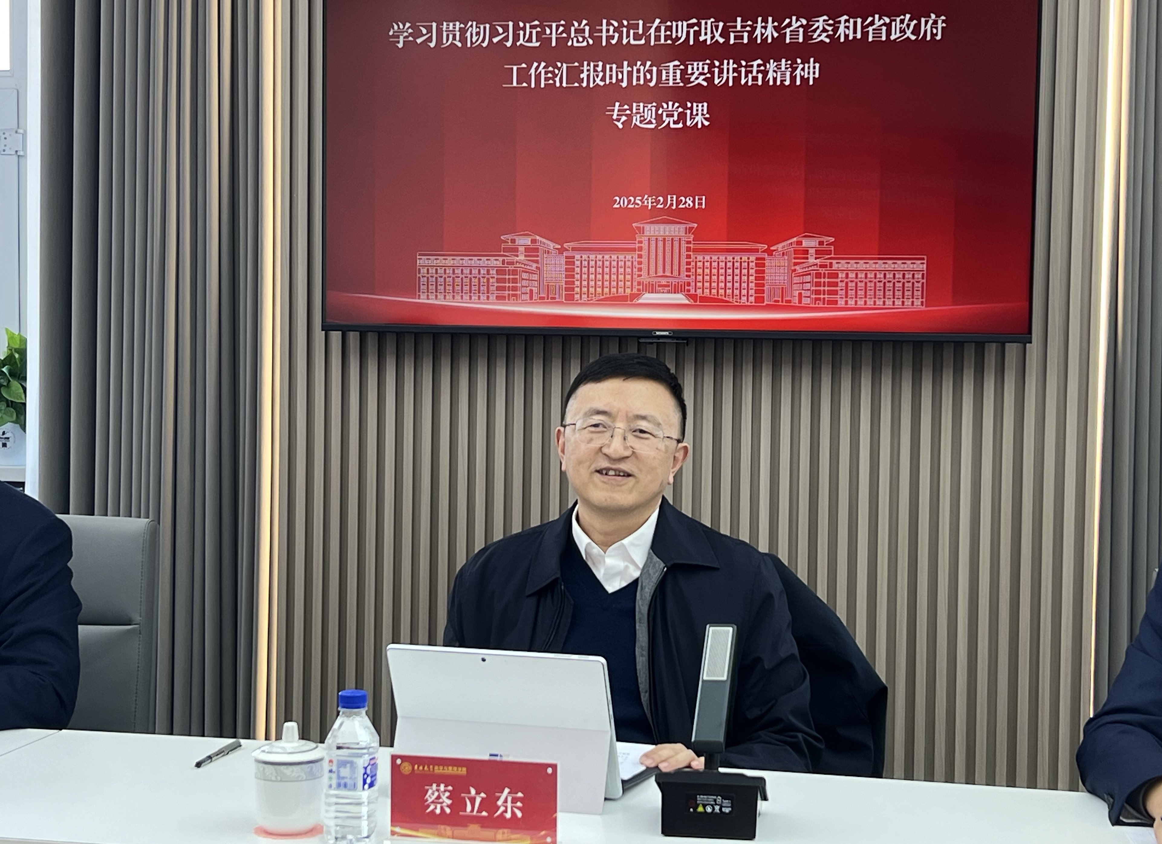 会上,蔡立东教授领学了习近平总书记在听取吉林省委和省政府工作汇报时的重要讲话精神,并分享了学习体会。他在发言中表示,习近平总书记在春节期间专程来到辽宁、黑龙江、吉林考察,让我们深切感受到党中央推动新时代东北全面振兴的坚定决心。习近平总书记的讲话深入探讨了吉林全面振兴的理论问题和实践问题,对事关吉林发展的各项重要事业进行了全方位的部署,具有极强的政治性、思想性、指导性和实践性。我们要从拥护“两个确立”,做到“两个维护”的政治高度出发,认真学习领会习近平总书记的重要讲话精神,全面把握其核心要义和实践要求,努力将学习成果转化为推动学院高质量发展的实际行动和精神动力。
