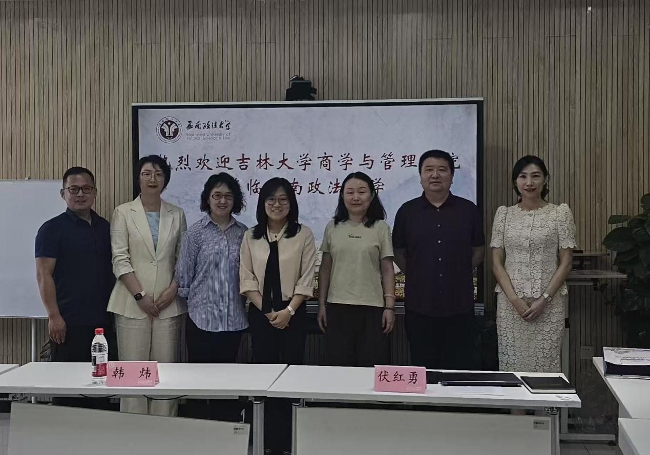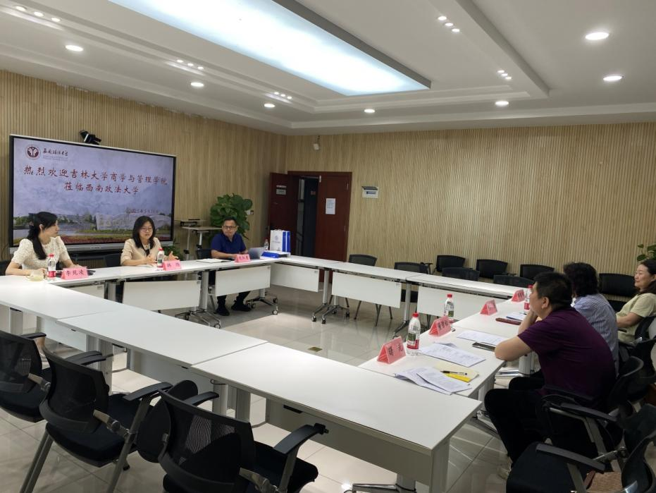 5月19日上午调研组来到西南政法大学商学院,商学院党委副书记、院长韩炜教授、副院长李苑凌教授、副院长伏红勇教授等参加调研座谈。西南政法大学“法学+工商管理”双学士学位复合型人才培养项目是重庆市首批双学士学位复合型人才培养项目,是国内专门从事法学研究的高校中率先尝试“法学+工商管理”双学位本科教育的院校。院长韩炜教授着重介绍了“法学+工商管理”双学士学位复合型人才培养项目的发展历程,伏红勇教授和李苑凌教授对双学位人才的具体培养过程进行了详细描述,随后双方围绕本科人才招生方式、人才培养目标、核心课程体系、核心课程团队建设情况和“人工智能+学科”课程设计等方面议题进行深入交流和研讨。此外,双方还就未来在教学、学科建设等方面的合作领域进行了深入的交流。