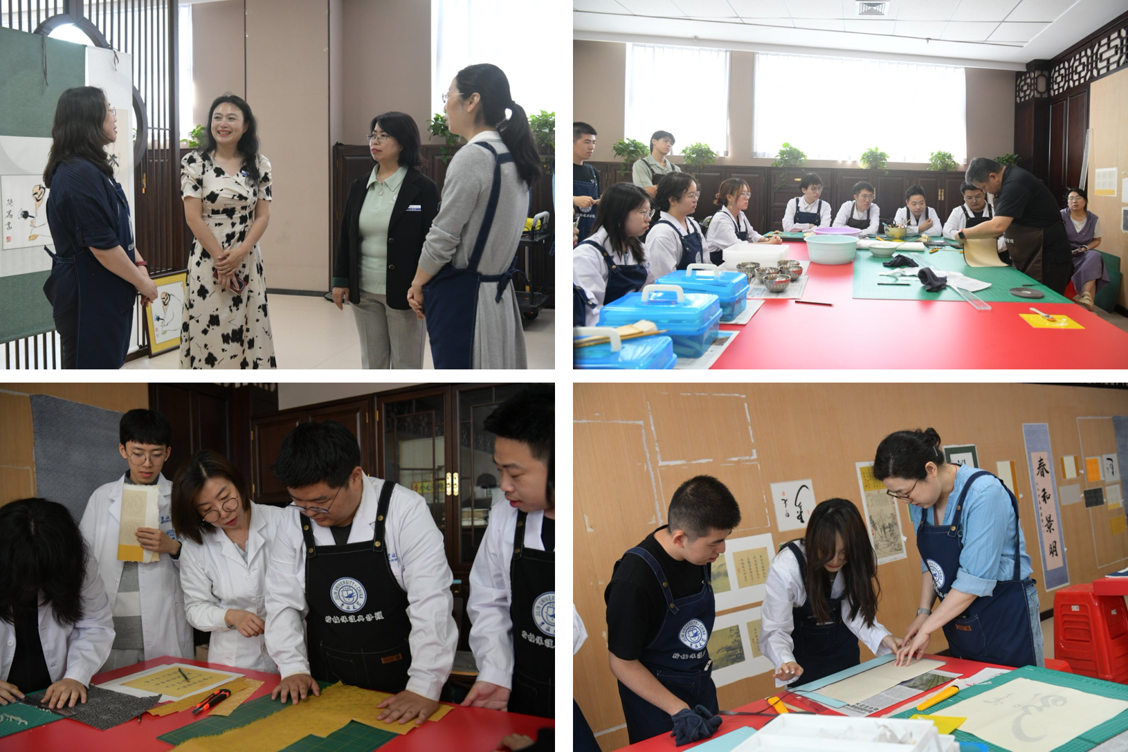 本门实践课程既传授理论知识,又强调动手实际操作,课程内容覆盖历史文献版本基础知识、纸质文献修复技术、传统手工书画装裱技术、碑帖传拓与雕版印刷技术等,将“知识-技能-文化”有机融合,从而塑造学生深层的文化内核。通过分组一对一指导、现场互动、师生之间以及学生之间的交叉合作等特色形式,学生不仅掌握了对纸质文献保护与修复的基本方法,也初步构建了对档案“生命史”与“修复伦理”的系统认识。本门课程教学团队由好色