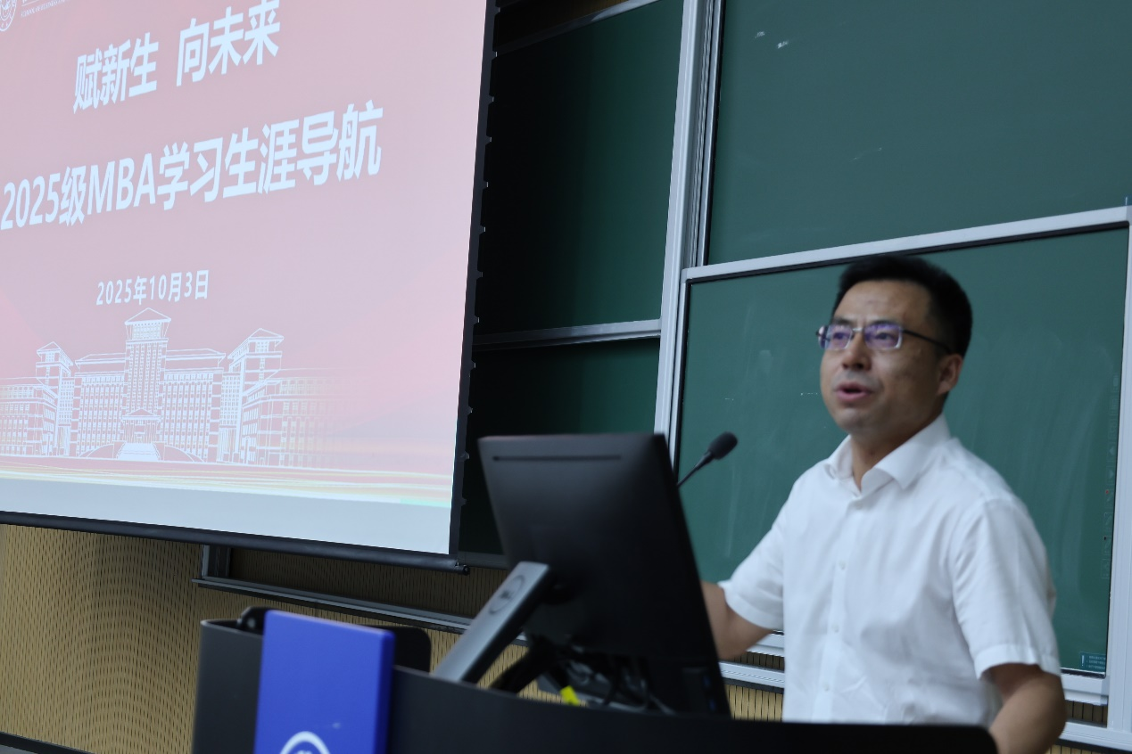 秋风习习聚新秀,共绘青春锦绣图。10月3日晚,“赋新生 向未来”—— 2025级MBA学习生涯导航活动在逸夫教学楼十阶教室顺利举行。MBA教育中心主任张公一教授,中心副主任、教学管理办公室主任林晶老师,学生事务工作办公室于琦老师等出席。活动由中心教学管理办公室谭睿昊老师主持。