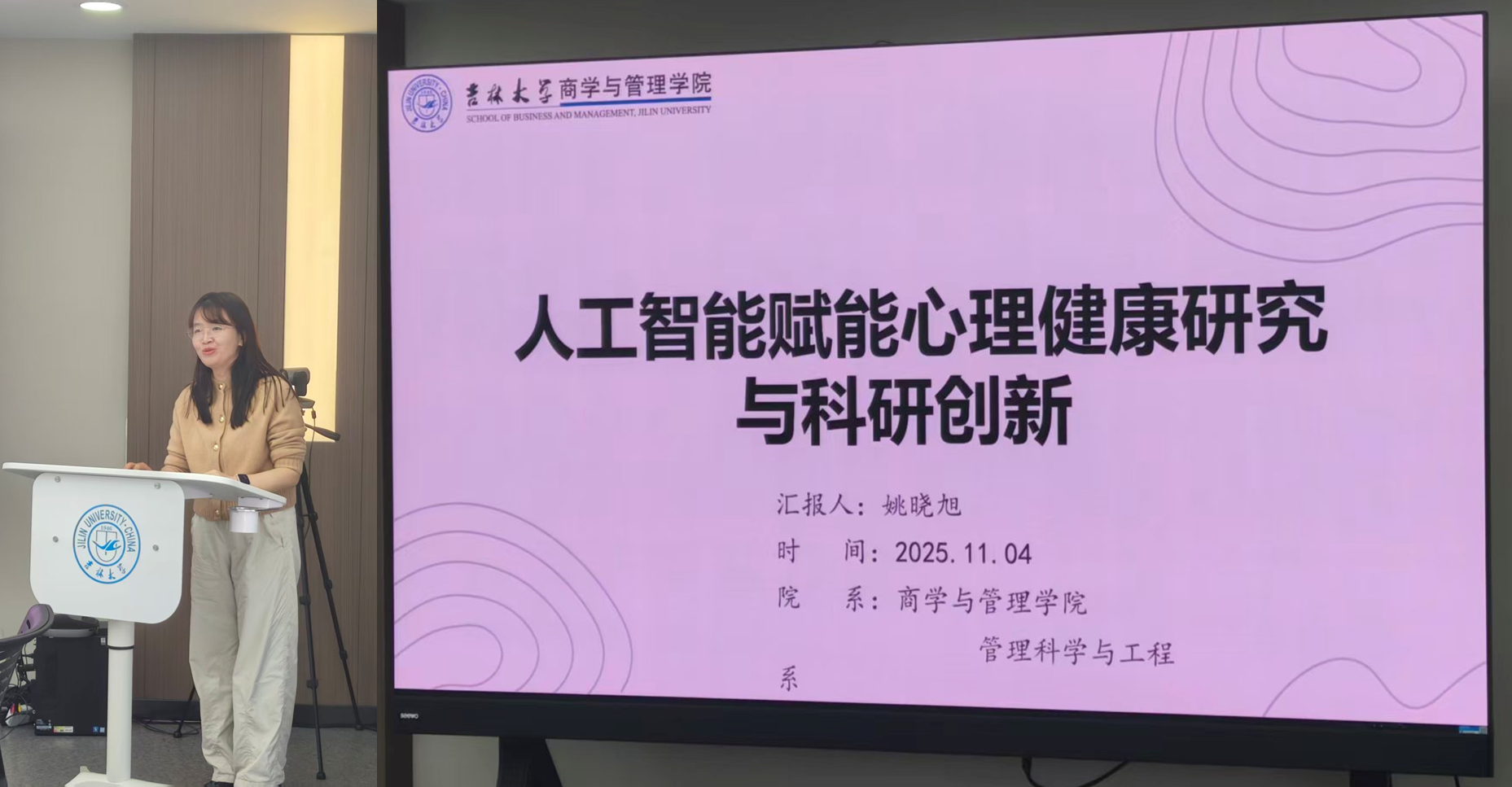 管理科学与工程学科姚晓旭老师以《人工智能赋能心理健康研究与科研创新》为主题,重点展示了自然语言处理、机器学习等人工智能技术在心理健康评估、干预及服务模式创新中的前沿应用,体现了数据驱动的研究范式对人文社科领域的深度融合与拓展。