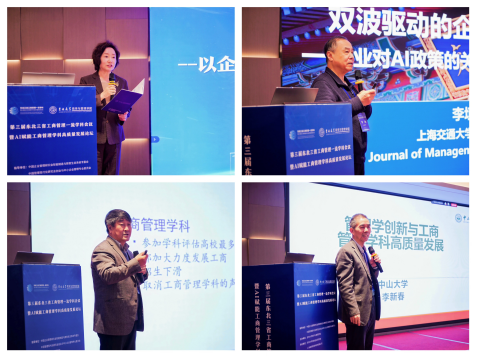 蔡莉教授主持。上海交通大学李垣教授以“双波驱动的企业创新战略——企业对AI政策的关注如何影响AI创新”为题,解析市场与政策波动叠加效应,为企业创新战略与学科发展提供理论参考。南开大学张玉利教授围绕“工商管理学科的时代发展与科学研究”议题,回应学科招生下滑、理论与实践脱节等挑战,强调提炼本土理论的重要性,为学科服务国家需求提供思路。中山大学李新春教授以“管理学创新与工商管理学科高质量发展”为题,剖析学科在科学性、交叉性、实践性上的困境,提出高质量发展需融合实践、革新知识与教育模式,为学科建设指明了方向。