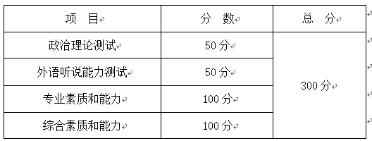 包括:思想政治素质和品德考核,内容包含考生的政治态度、思想表现、道德品质、遵纪守法、诚实守信等方面;学习、科研、社会实践或实际工作表现等方面的情况;事业心、责任感、纪律性(遵纪守法)、协作性;人文素养;心理健康情况。内容为:考生从综合素质能力题库随机抽取试题,并回答评委问题。
