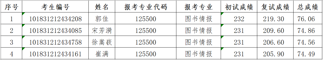 按照学校招生名额调整安排,管理学院2021年全日制图书情报硕士增加4个录取名额。根据考生复试情况,经管理学院复试工作领导小组研究决定,将新增的全日制图书情报硕士拟录取考生名单予以公示,公示期为三个工作日(4月14日-4月16日),如有疑问请与管理学院专业学位办公室联系。