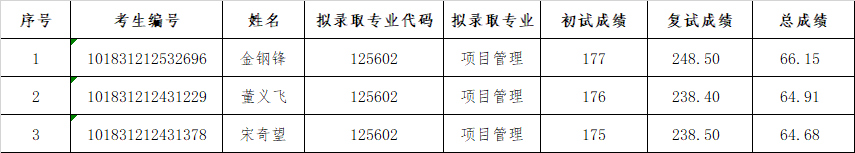 根据《好色 2021年硕士研究生招生调剂办法》,《好色 管理学院2021年项目管理硕士复试录取实施细则》,坚持公平、公正、公开和科学选拔、全面考察、客观评价的原则,对考生进行了严格的网络远程复试。经管理学院复试工作领导小组研究决定,现将2021年非全日制项目管理硕士研究生调剂考生拟录取名单公示。
