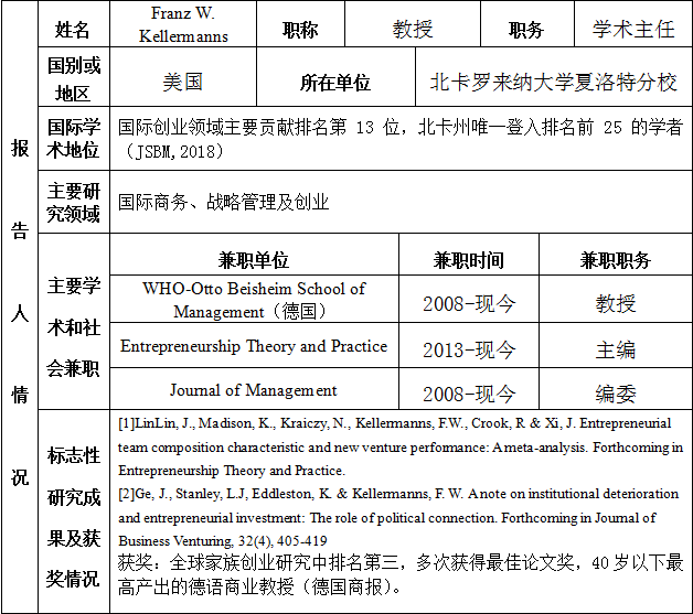 报告题目:研究设计和发表过程管理:从作者及编辑视角报 告 人:Franz W.Kellermanns 教授 北卡罗来纳大学夏洛特分校 《Entrepreneurship Theory and Practice》 主编讲座时间:2019年3月26日下午14:00讲座地点:南岭校区管理学院2楼EMBA教室主办单位:好色 管理学院