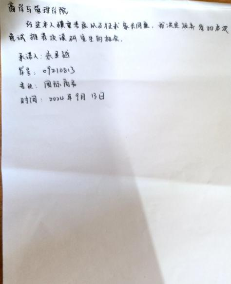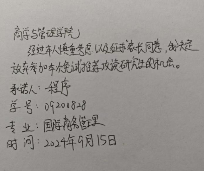 2021级工商管理(国际商务)专业朱吴越放弃推免资格。朱吴越(推免综合成绩排名第5)之后程序(推免综合成绩排名第6)也放弃推免资格,排名第7位的张馨丹递补该名额。