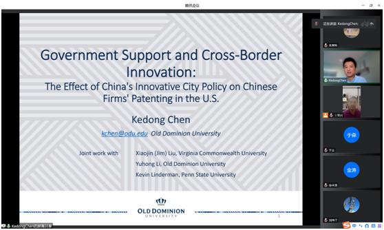 管理科学与工程系邀请了欧道明大学(Old Dominion University)信息系统与决策科学系的陈珂栋副教授为学院的师生进行了一场题目为《Government Support and Cross-Border Innovation: The Effect of China’s Innovative City on Chinese Firms’ Patenting in the U.S.》的学术讲座,讲座通过腾讯会议以线上的形式进行。